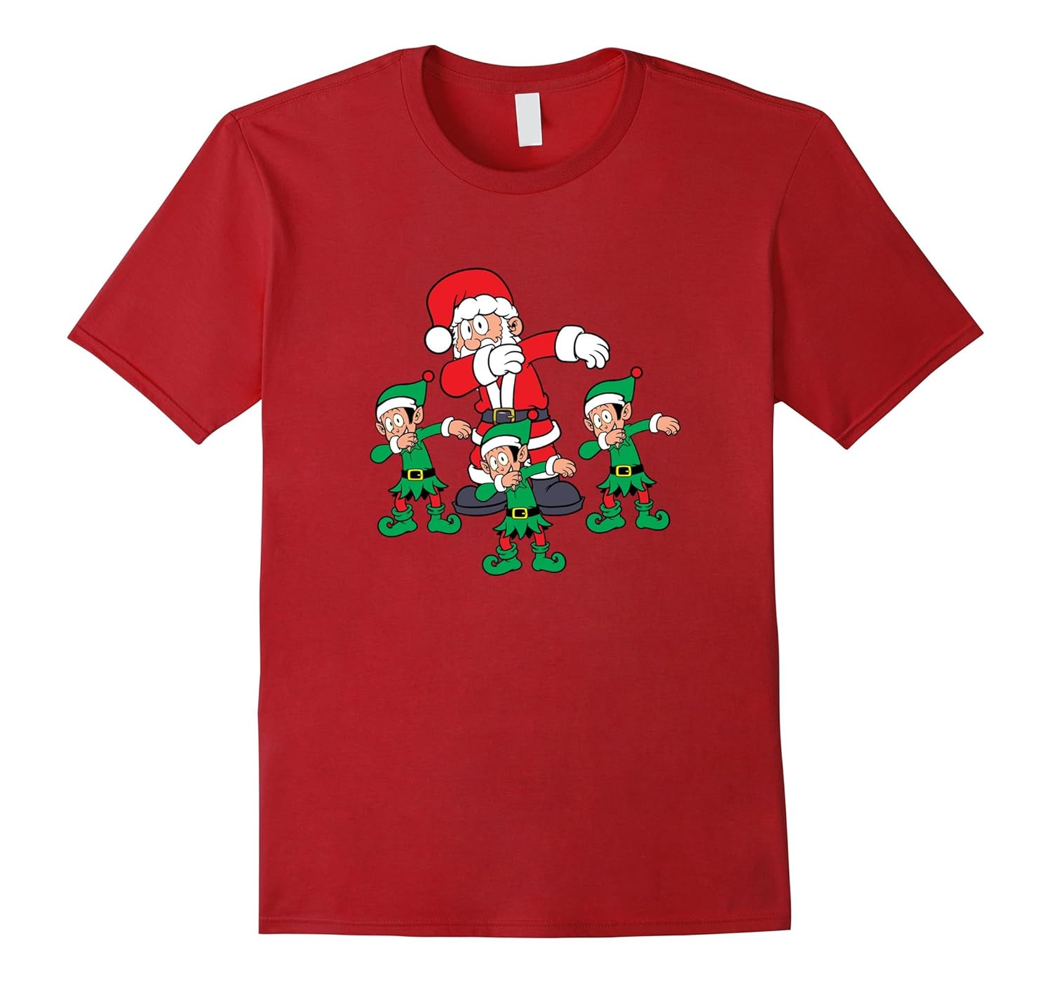 Funny Christmas Gift Top Dabbing Santa With Elves T Shirt-ANZ