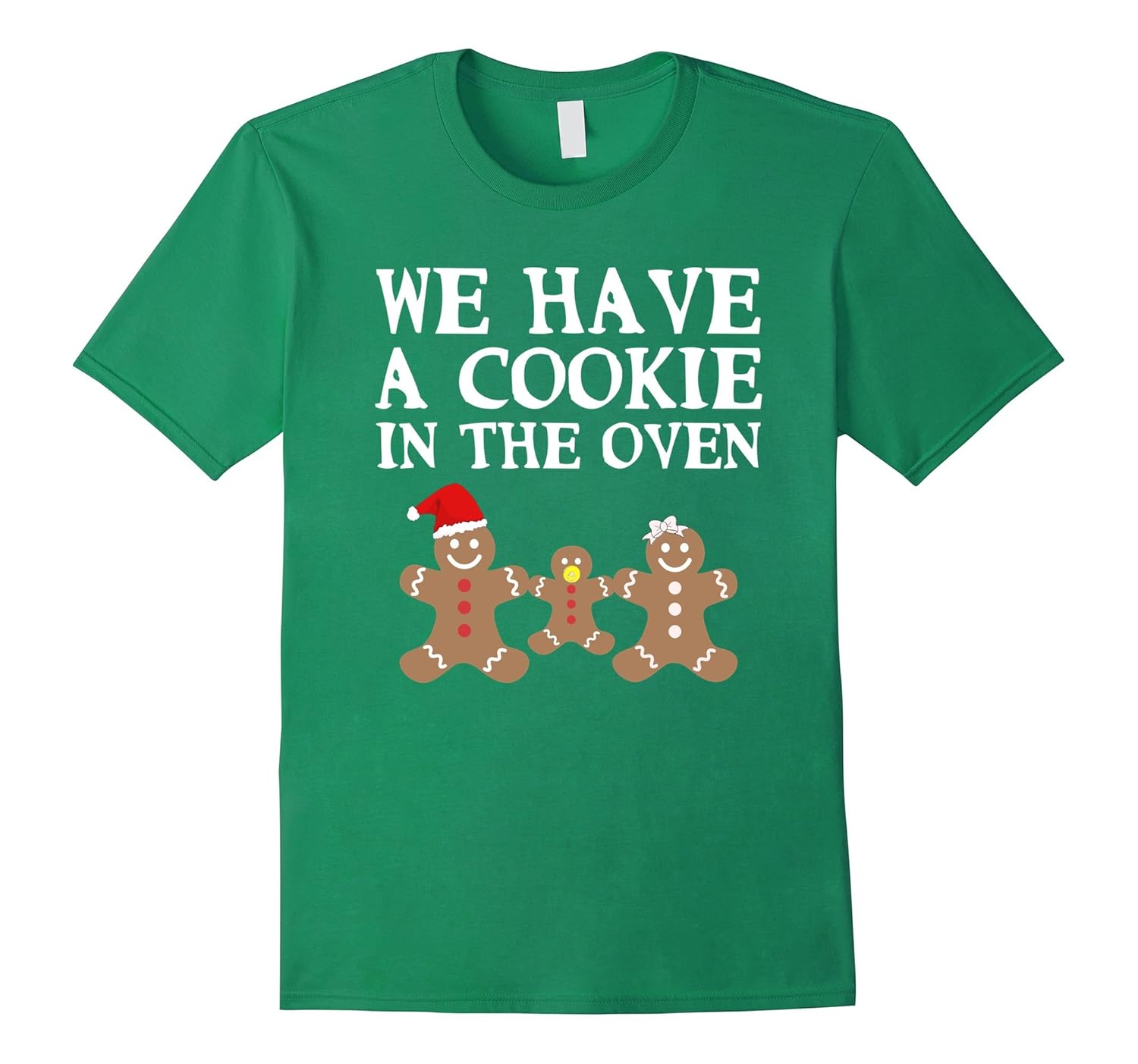 Solid colors: 100% Cotton; Heather Grey: 90% Cotton, 10% Polyester; All Other Heathers: 65% Cotton, 35% Polyester; Imported; Machine wash cold with like colors, dry low heat; WE HAVE A COOKIE IN THE OVEN: FUNNY CHRISTMAS PREGNANCY BABY ANNOUNCEMENT SHIRT GIFT. This funny, cute Christmas cookie pregnancy shirt makes a hilarious gift to wear to show off to friends and family.; Great winter X-MAS pregnancy announcement t-shirt makes an awesome Christmas gift for mom, dad sister, brother wife, husband, son, daughter, grandson, girlfriend, boyfriend to wear to Christmas party, wedding shower, baby shower.; Lightweight, Classic fit, Double-needle sleeve and bottom hem