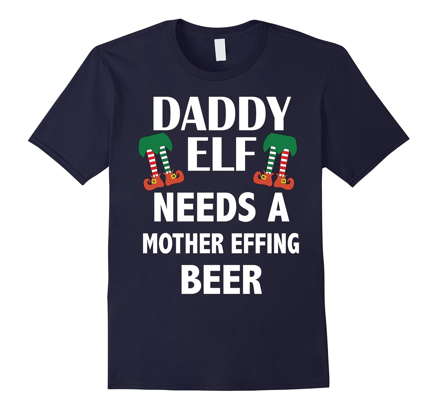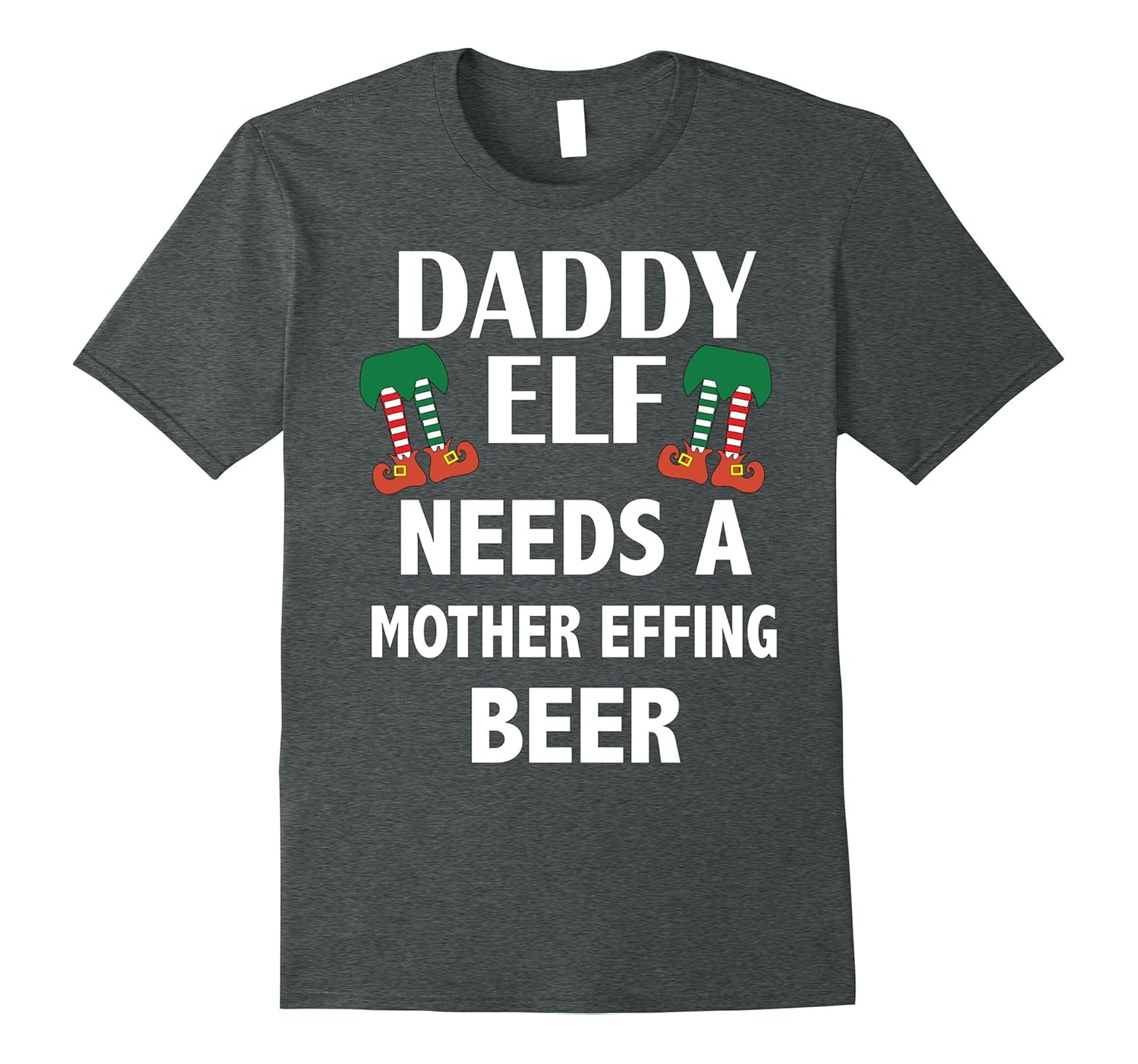 Funny Christmas TShirt Daddy Elf Needs A Effing Beer TShirt-ANZ