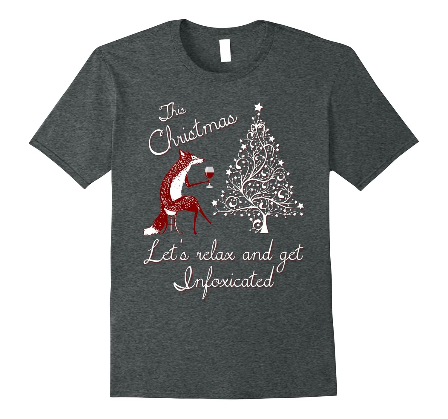 Solid colors: 100% Cotton; Heather Grey: 90% Cotton, 10% Polyester; All Other Heathers: 65% Cotton, 35% Polyester; Imported; Machine wash cold with like colors, dry low heat; Perfect Christmas Shirt for wine drinkers who love foxes! Shirt has a great image of a red fox drinking wine in front of the Christmas Tree Andamp; reads This Christmas Lets relax and get Infoxicated; Great Christmas gift for wine drinkers – our best holiday wine shirt design. Great Christmas shirt for men, women, mom, dad, boyfriend, girlfriend, boyfriend, husband, wife – anyone looking to relax with wine this Christmas vacation!; Lightweight, Classic fit, Double-needle sleeve and bottom hem