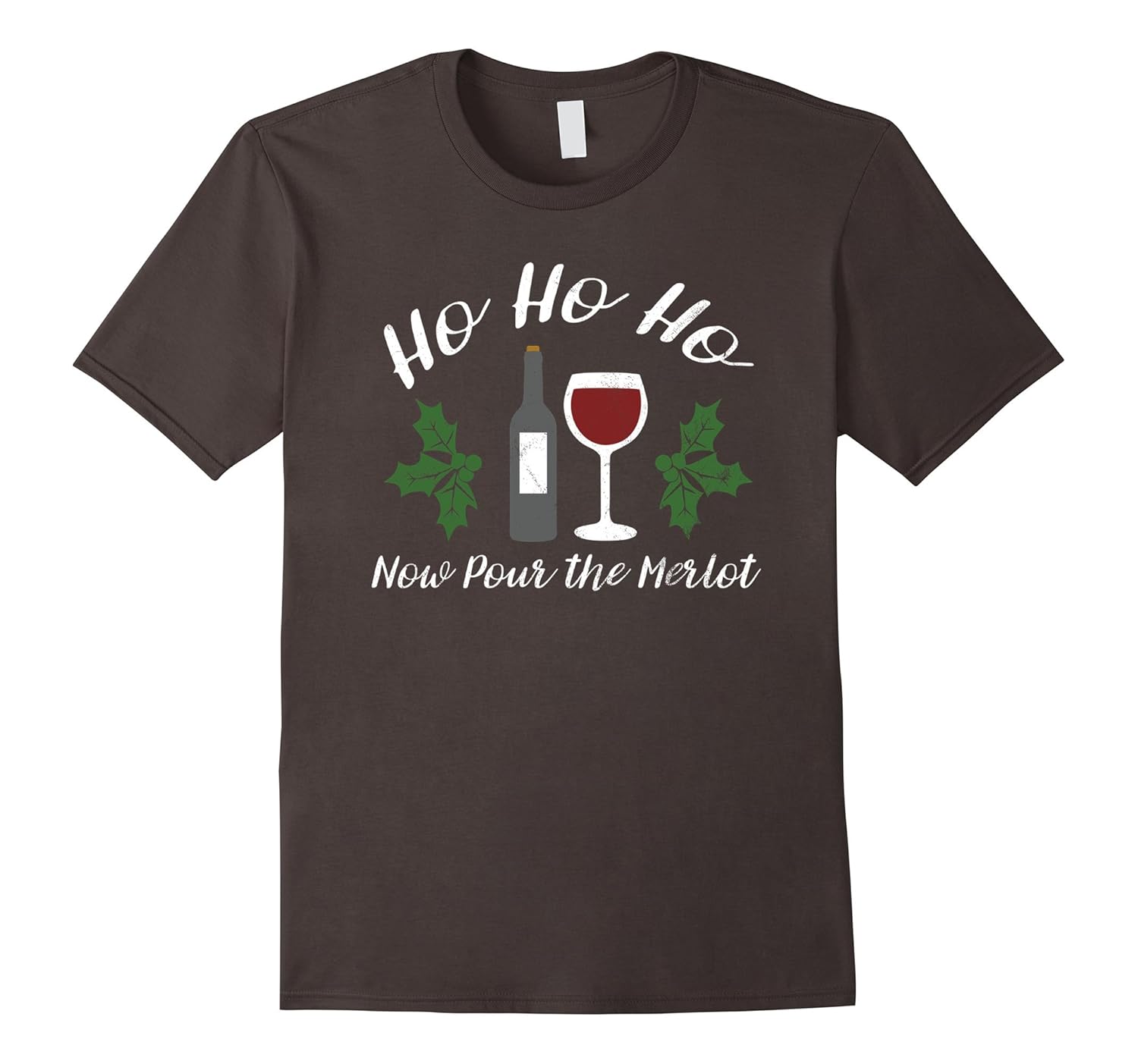 Funny Christmas Wine Tshirt Ho Ho Ho Pour Merlot-ANZ