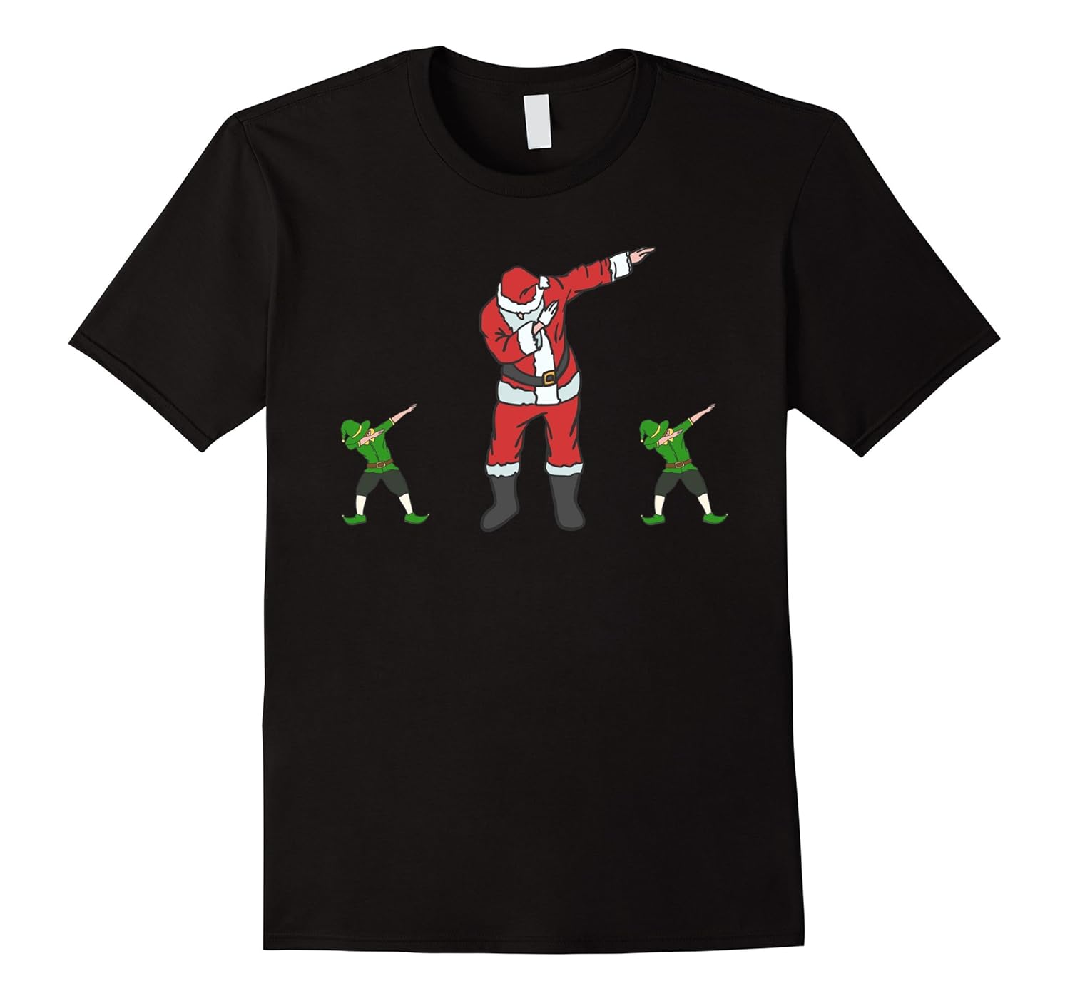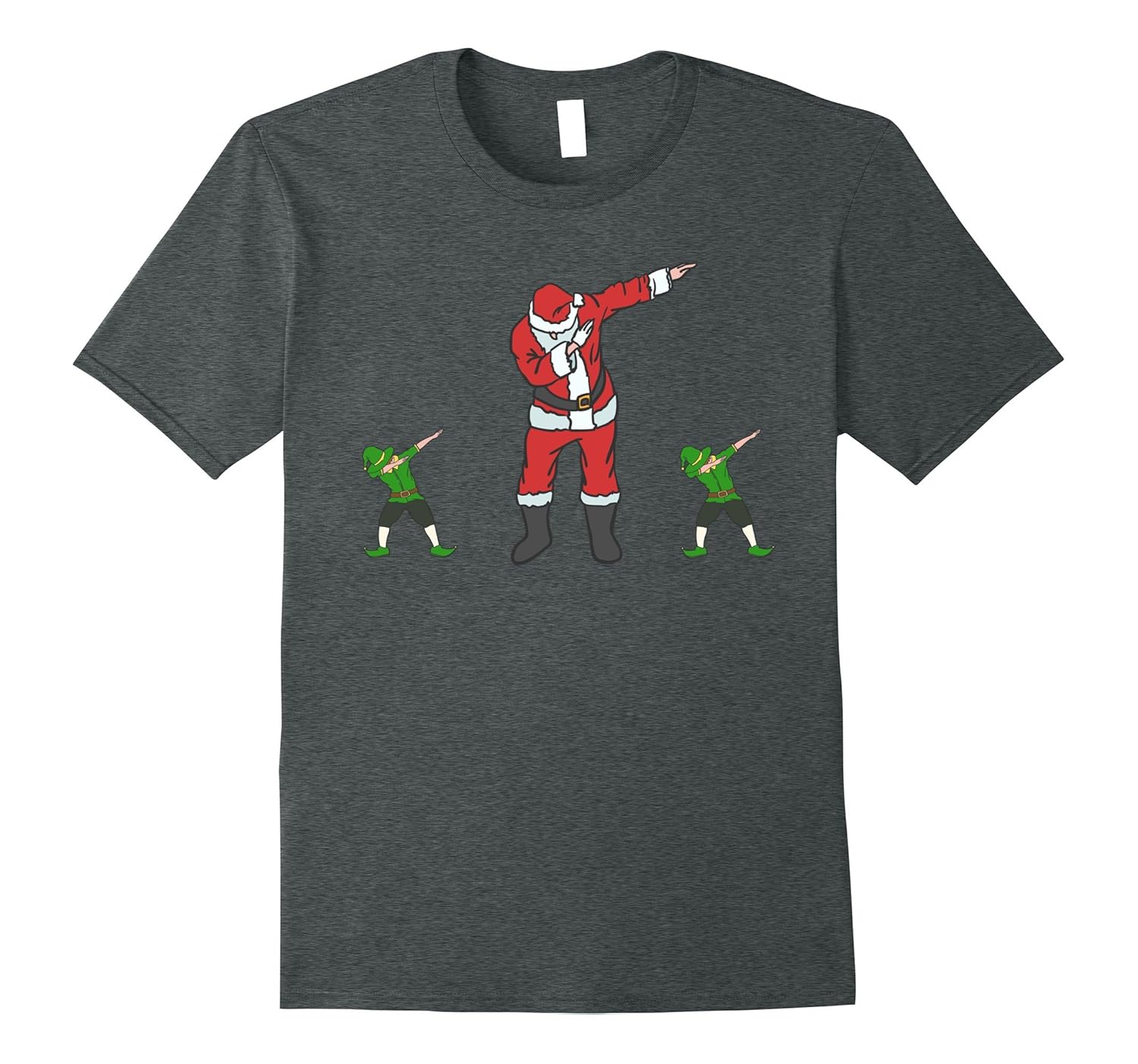 Solid colors: 100% Cotton; Heather Grey: 90% Cotton, 10% Polyester; All Other Heathers: 65% Cotton, 35% Polyester; Imported; Machine wash cold with like colors, dry low heat; This funny Christmas novelty t shirt makes the perfect Christmas gag gift and is sure to get some laughs. This unique graphic tee shirt features Santa Claus doing the dab dance and he brought 2 dabbing elves to help him. Great for kids, teens and adults.; This is a great tshirt to wear to a Christmas party or to the big holiday feast with family. Also a cool christmas group costume tee shirt for the family or friends that want a matching Christmas t-shirt for a funny group photo. Great unisex shirt.; Lightweight, Classic fit, Double-needle sleeve and bottom hem