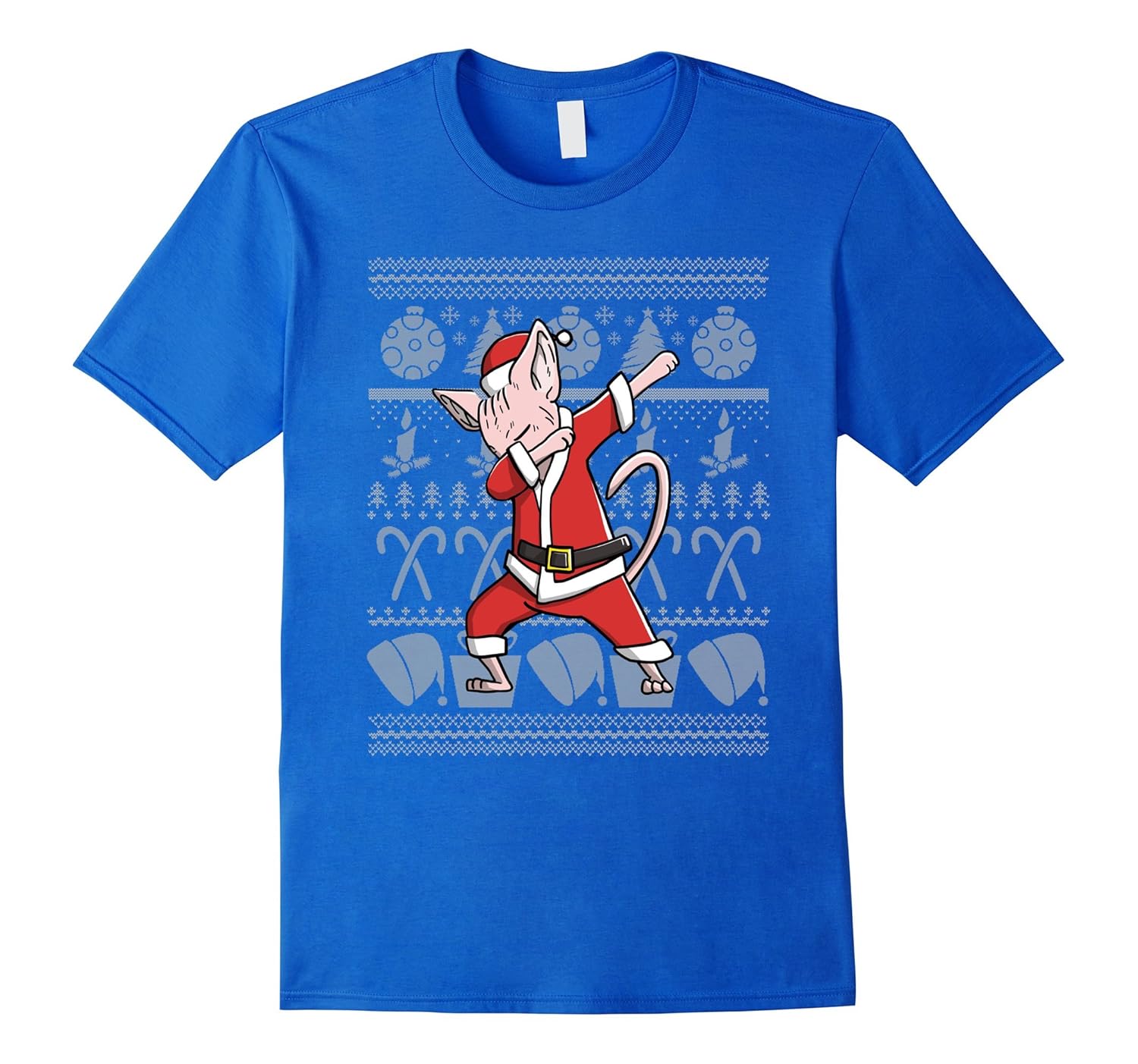 Solid colors: 100% Cotton; Heather Grey: 90% Cotton, 10% Polyester; All Other Heathers: 65% Cotton, 35% Polyester; Imported; Machine wash cold with like colors, dry low heat; Merry Christmas to all Sphynx Cat lovers and owners. We have the most wonderful tacky Christmas shirts for you. These t shirts make the perfect Sphynx Cat gifts for Sphynx Cat lovers, kids, family and friends.; Celebrate the holidays with these Sphynx Cat Ugly Christmas t-shirts. These tee shirts feature a funny Sphynx Cat pet wearing a Santa suit and doing the famous dab dance pose. Unique, great looking and 100% custom designed dabbing Sphynx Cat Christmas shir; Lightweight, Classic fit, Double-needle sleeve and bottom hem
