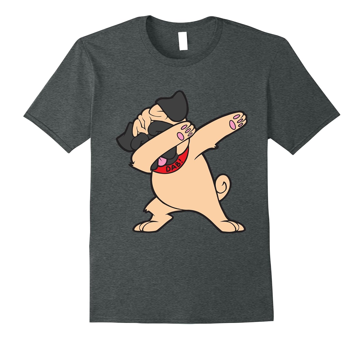 Solid colors: 100% Cotton; Heather Grey: 90% Cotton, 10% Polyester; All Other Heathers: 65% Cotton, 35% Polyester, Imported, Machine wash cold with like colors, dry low heat, This cute shirt features a cartoon tan pug dog striking a funny dab dance pose on dark shirts. This funny tan pug dog shirt is appropriate for adults, teens and kids, and is available in sizes and styles for men, women and kids. Please refer to the image with the size charts in order to ensure you select a comfortable fit. Lightweight, Classic fit, Double-needle sleeve and bottom hem