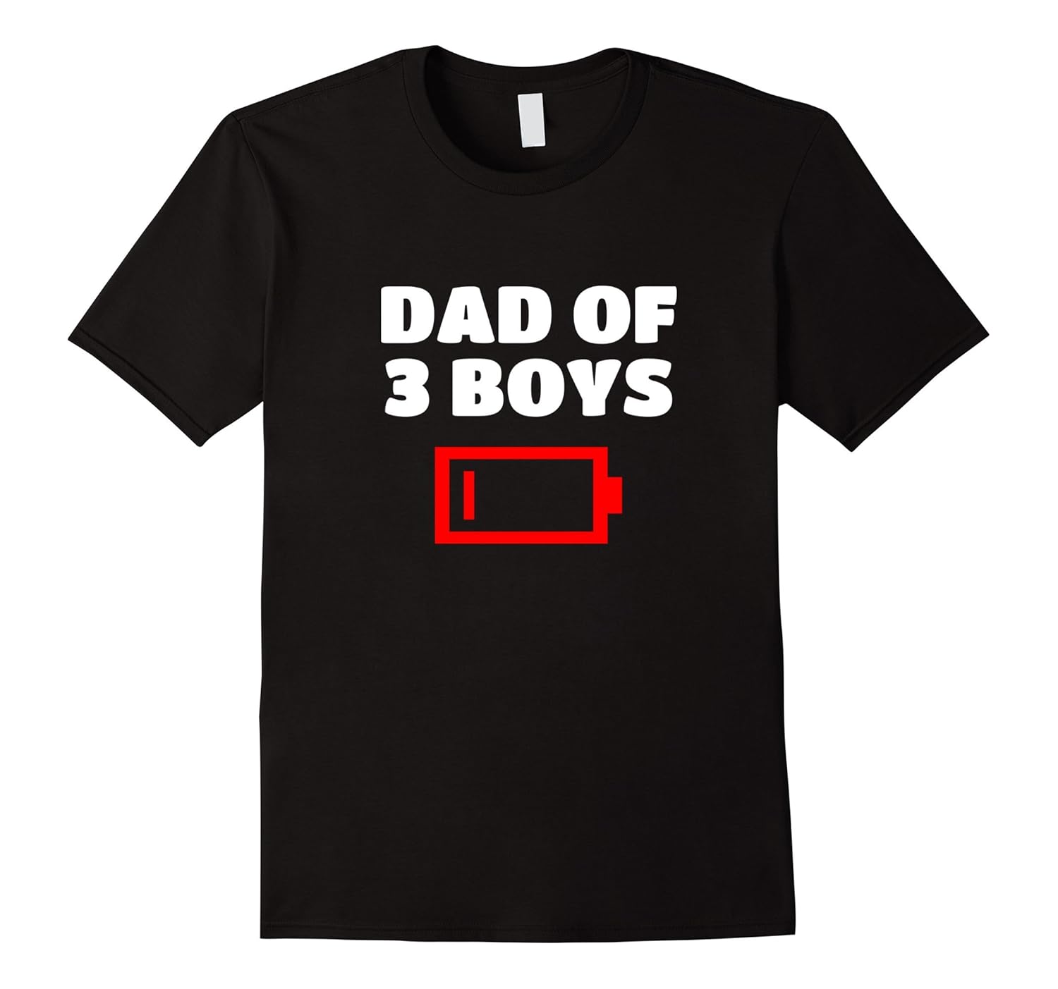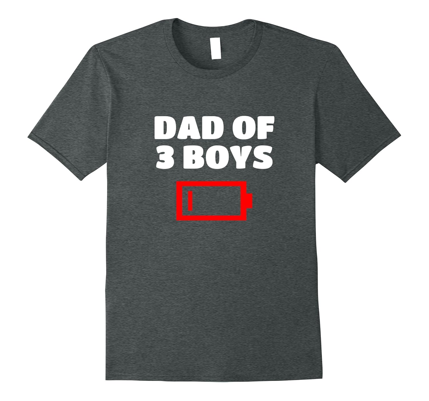 Solid colors: 100% Cotton; Heather Grey: 90% Cotton, 10% Polyester; All Other Heathers: 50% Cotton, 50% Polyester; Imported; Machine wash cold with like colors, dry low heat; Whether you call your parent dad, daddy, father, papa, pop or pa, he deserves a funny dad tshirt for Christmas, Birthday, Name day, Fathers Day or Easter. Features a funny quote slogan, minimalistic design with large white text and a red low battery icon; This clever novelty tee shirt is an ideal gift for proud single fathers of three amazing sons. Wear this smart Tshirt to PTA meetings, parties, while shopping and attract positive comments and smiles from moms and dads. ORDER A SIZE UP FOR LOOSER FIT; Lightweight, Classic fit, Double-needle sleeve and bottom hem