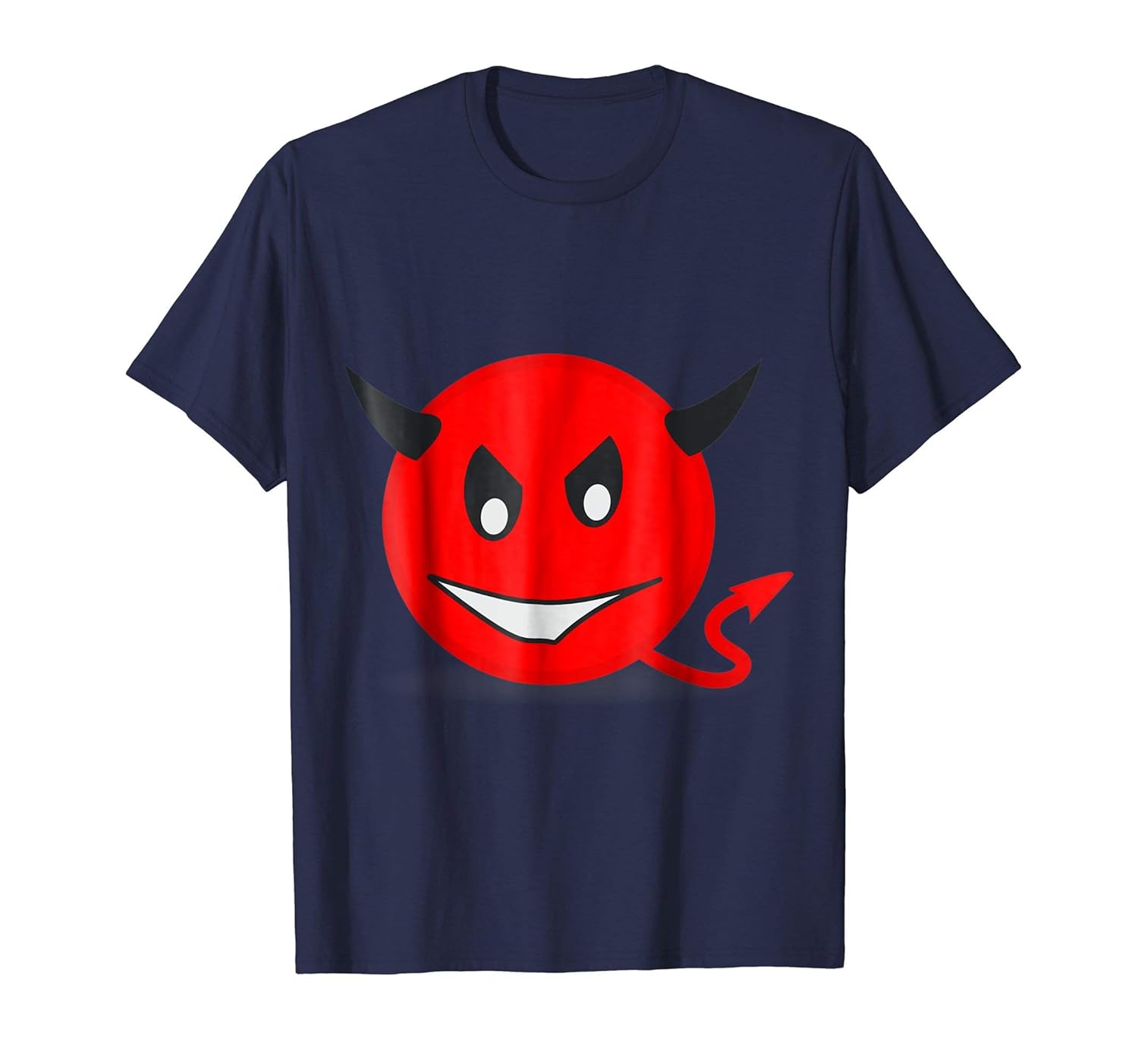 Solid colors: 100% Cotton; Heather Grey: 90% Cotton, 10% Polyester; All Other Heathers: 50% Cotton, 50% Polyester; Imported; Machine wash cold with like colors, dry low heat; Perfect Halloween Tshirt for parties or to wear when greeting trick or treat kids. A cute, funny and scary Haloween outfit. A great spooky horror Halloween costume for kids or Halloween costume women and men.; Funny Devil Halloween Emoji T-Shirt is a great gift for a boy girl kid child or adult. Easy Halloween costume that scary vampires, goblins, spooks and ghosts will love. This Halloween party T-shirt goes with Halloween decorations and Haloween props.; Lightweight, Classic fit, Double-needle sleeve and bottom hem