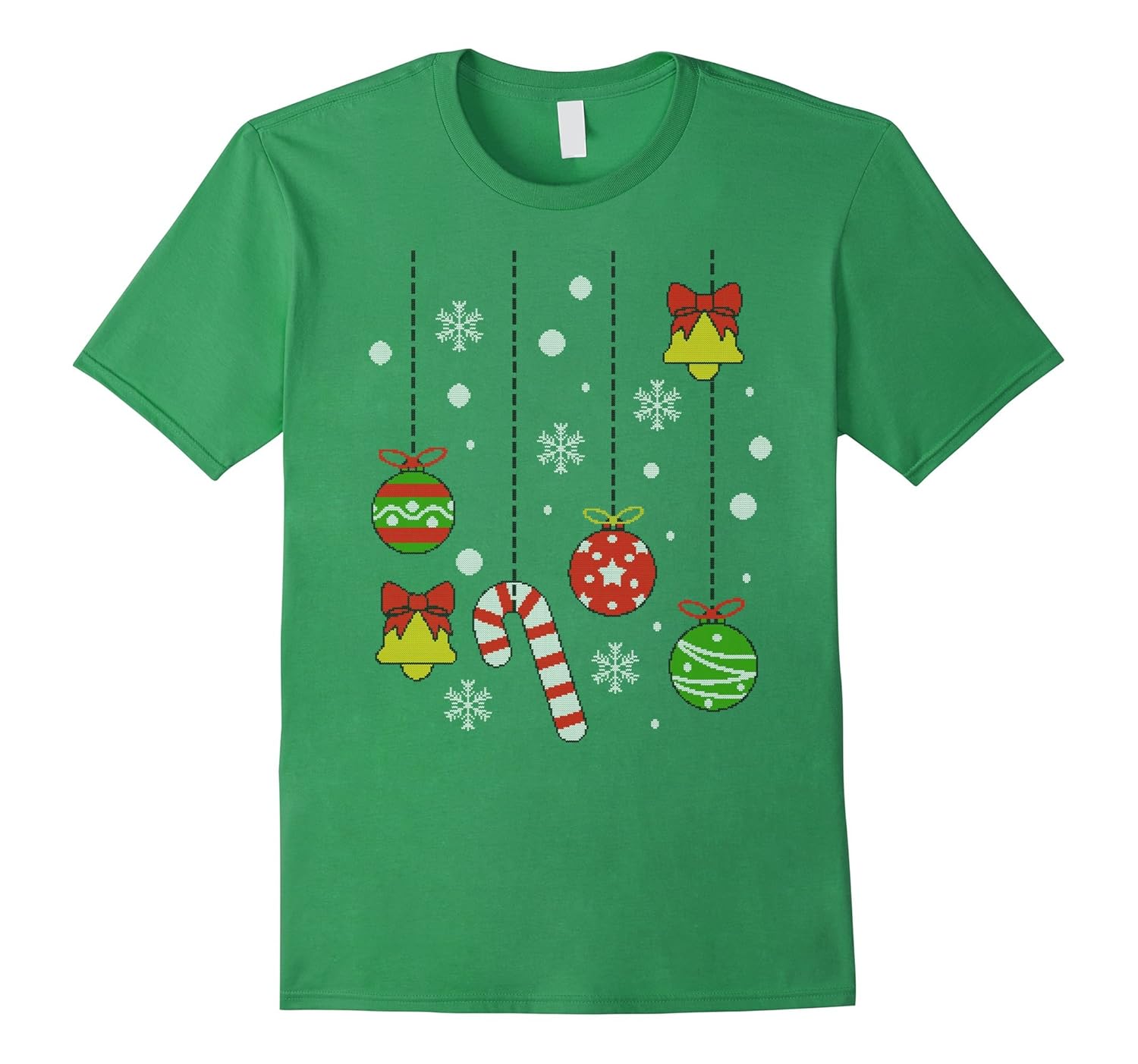 Solid colors: 100% Cotton; Heather Grey: 90% Cotton, 10% Polyester; All Other Heathers: 65% Cotton, 35% Polyester; Imported; Machine wash cold with like colors, dry low heat; Tacky Christmas Tree Ugly Sweater T-Shirt with ornaments, balls, bells, ribbons, candy canes and snowflakes. Great for Christmas Holiday Party with the family, Ugly Sweater Party, Office Party, Teacher, School Party and Christmas plays.; Funny gift idea for all kids, mom, dad, teachers kindergarten, preschool, school, work or team. Great for a funny holiday family photo on Thanksgiving, Christmas, and New Years. Funny stocking stuffer for kids, men and women.; Lightweight, Classic fit, Double-needle sleeve and bottom hem
