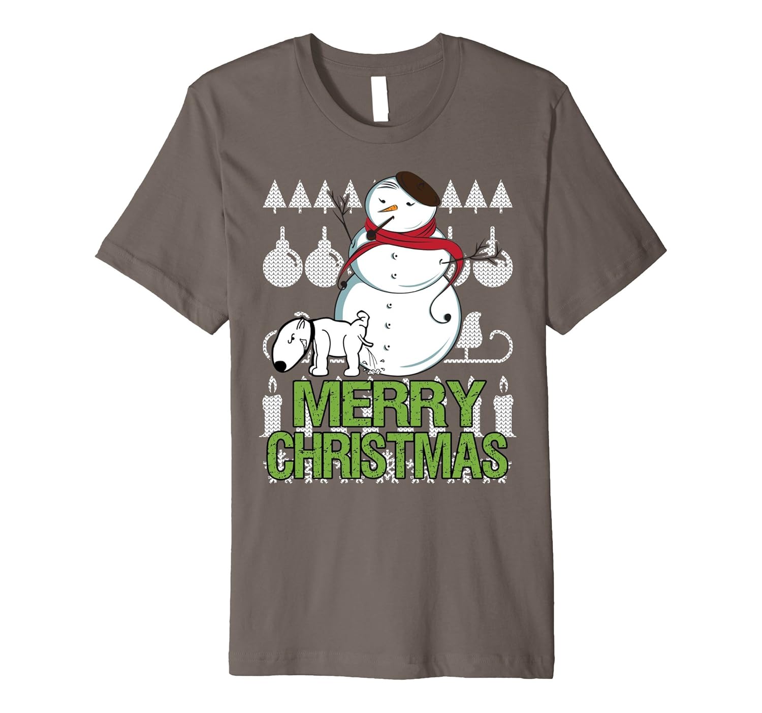 Funny Dog Peeing On Snowman Ugly Christmas Sweater T-shirt-ANZ