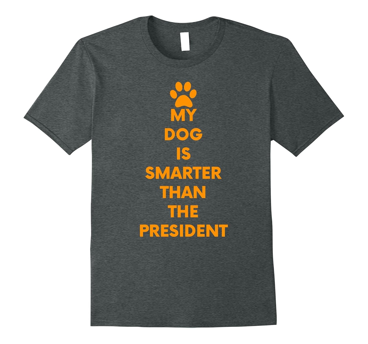 Solid colors: 100% Cotton; Heather Grey: 90% Cotton, 10% Polyester; All Other Heathers: 65% Cotton, 35% Polyester, Imported, Machine wash cold with like colors, dry low heat, Is your dog a smart pup. If your dog can sit, play fetch, do tricks, follow commands, and not drive the country into a ditch, your dog is smarter than the president! Great gift idea!, This shirt is sized to be fitted. For a relaxed fit, please order one size larger than normal. If you”re upset with politics but love your dog, show your pride with this funny MY DOG IS SMARTER THAN THE PRESIDENT t-shirt!, Lightweight, Classic fit, Double-needle sleeve and bottom hem
