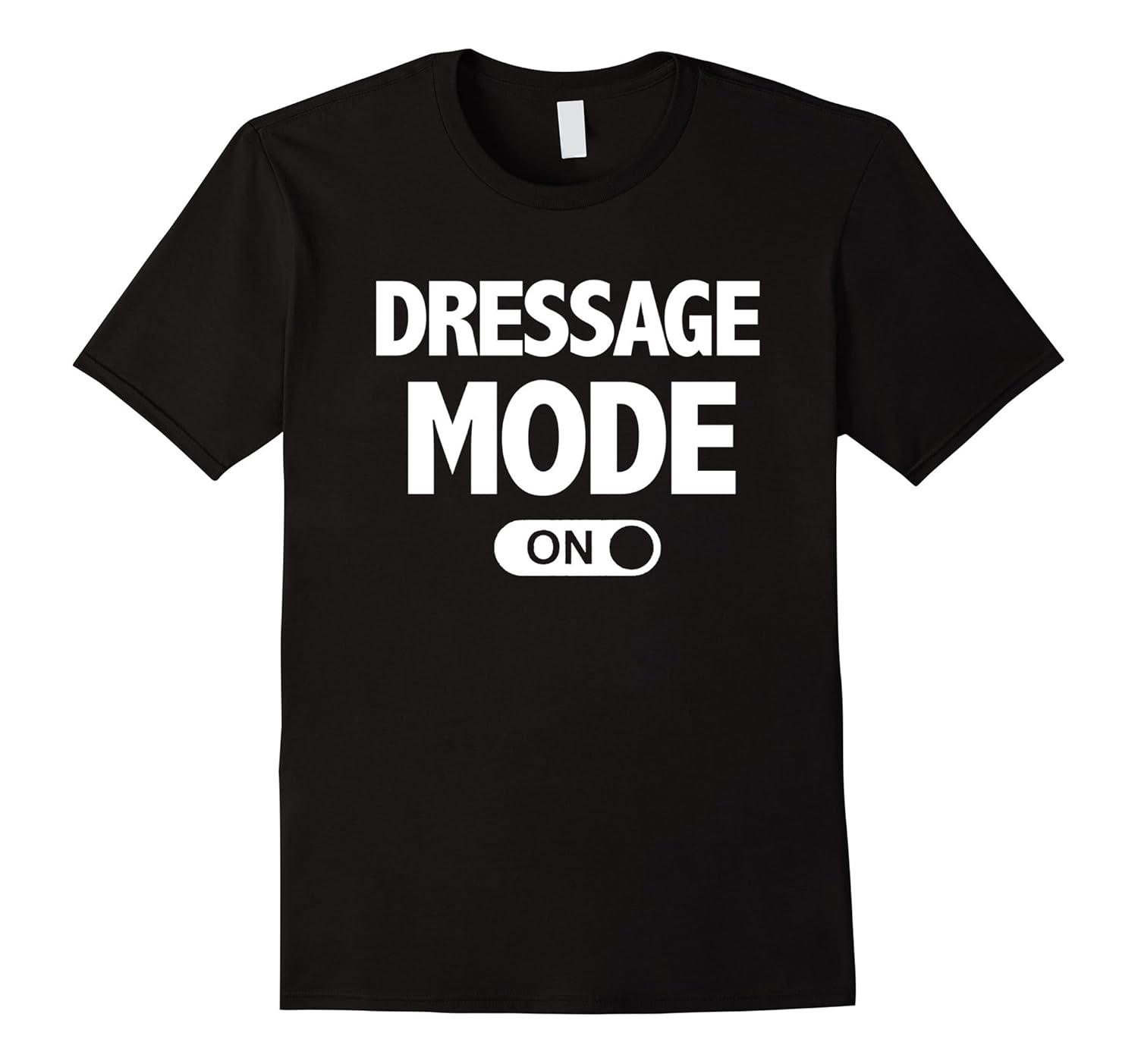 Solid colors: 100% Cotton; Heather Grey: 90% Cotton, 10% Polyester; All Other Heathers: 65% Cotton, 35% Polyester, Imported, Machine wash cold with like colors, dry low heat, This funny dressage t-shirt gift saying Dressage Mode On is perfect for the cowboy or cowgirl in your life who loves horseback riding! For rodeos, horse trainers, riding students, competitions, shows, or just in the barn!, The perfect gift for the one who loves horses in your life for Christmas, birthday, gift baskets, or competitions. Great for equestrian events!, Lightweight, Classic fit, Double-needle sleeve and bottom hem