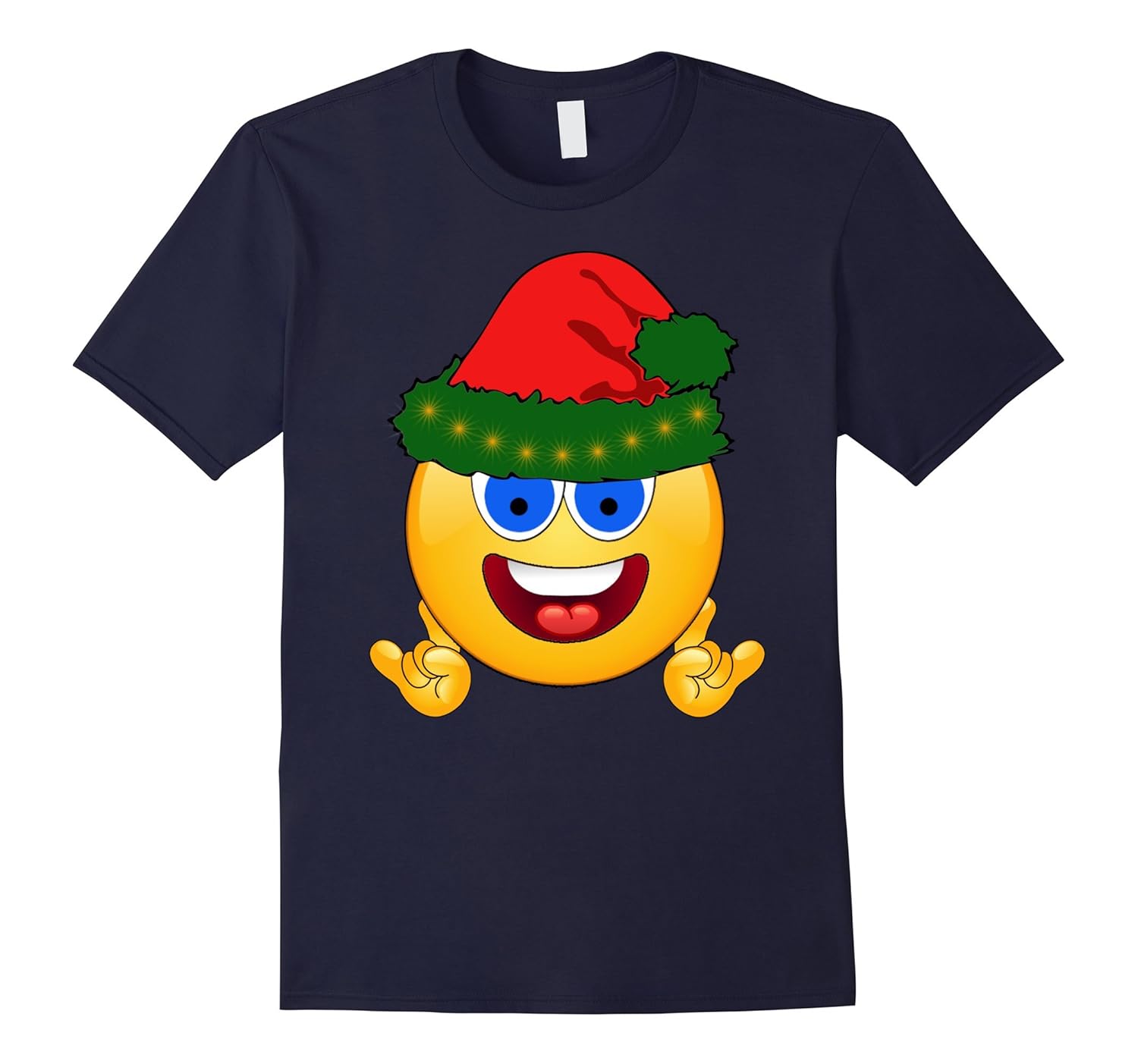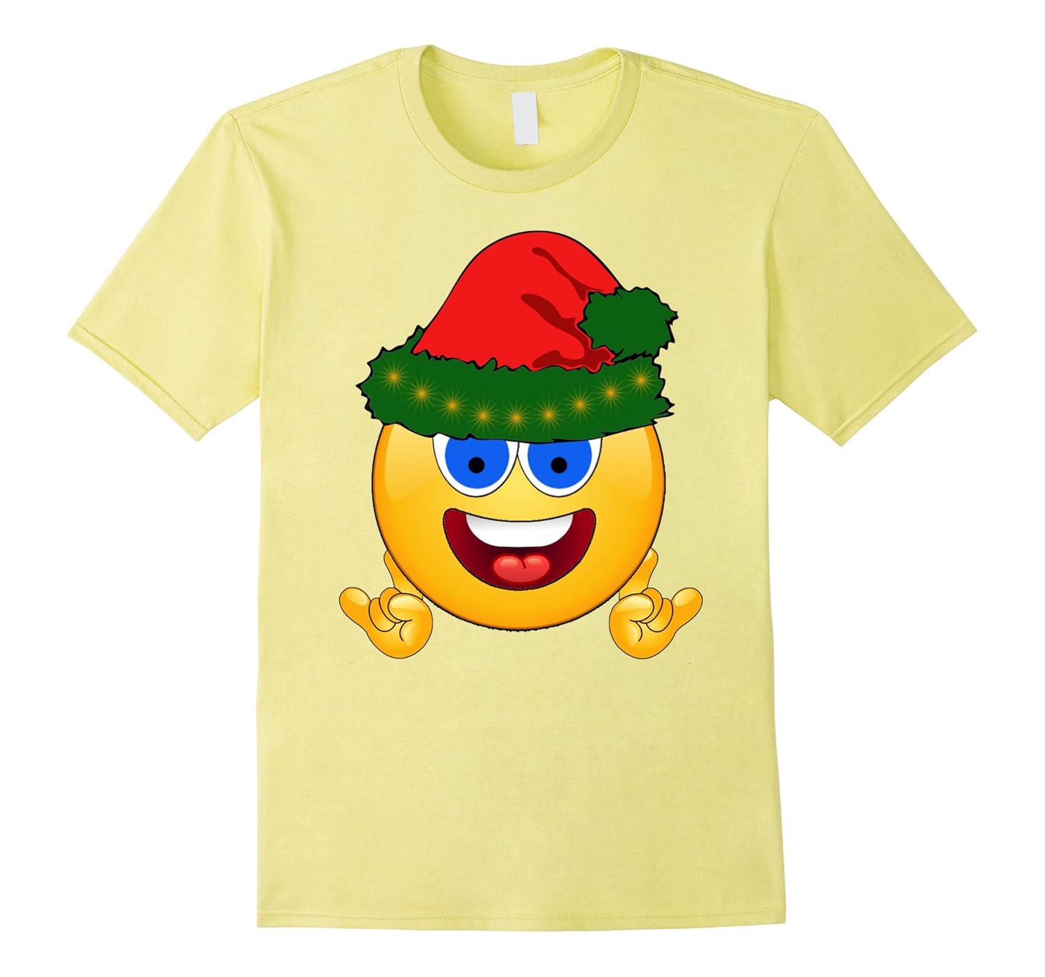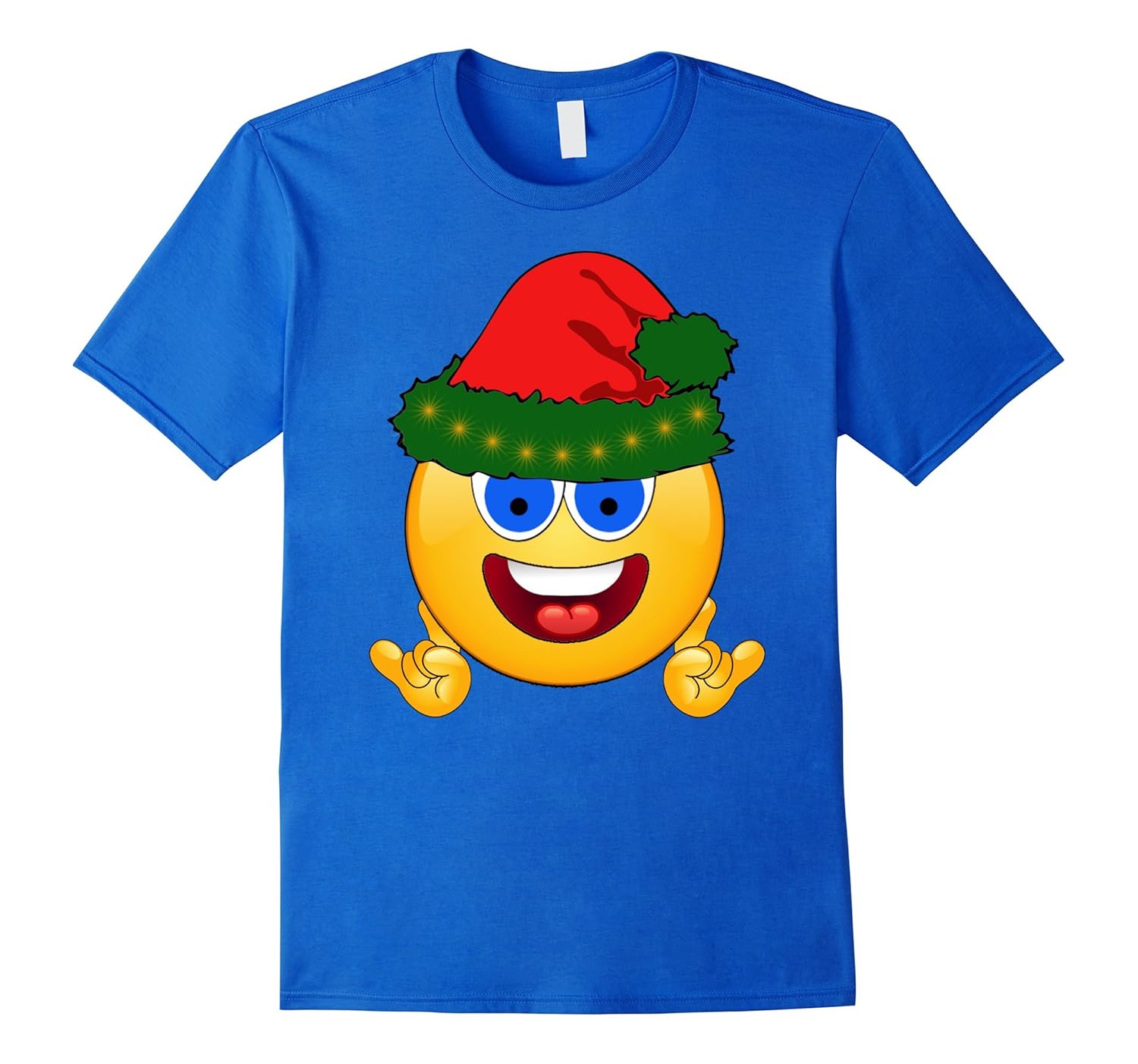 Solid colors: 100% Cotton; Heather Grey: 90% Cotton, 10% Polyester; All Other Heathers: 65% Cotton, 35% Polyester, Imported, Machine wash cold with like colors, dry low heat, Cute emoji smiley happy face tee for Christmas t-shirt. This emoji icon wears a green and red santa hat to show it”s emotion for the joyous jolly season which is around the corner. This nerdy tee is perfect for the holiday season. It will help you celebrate the season in style. Buy this novelty tee as gift for a special someone or wear if yourself and show off your Christmas spirit. Lightweight, Classic fit, Double-needle sleeve and bottom hem