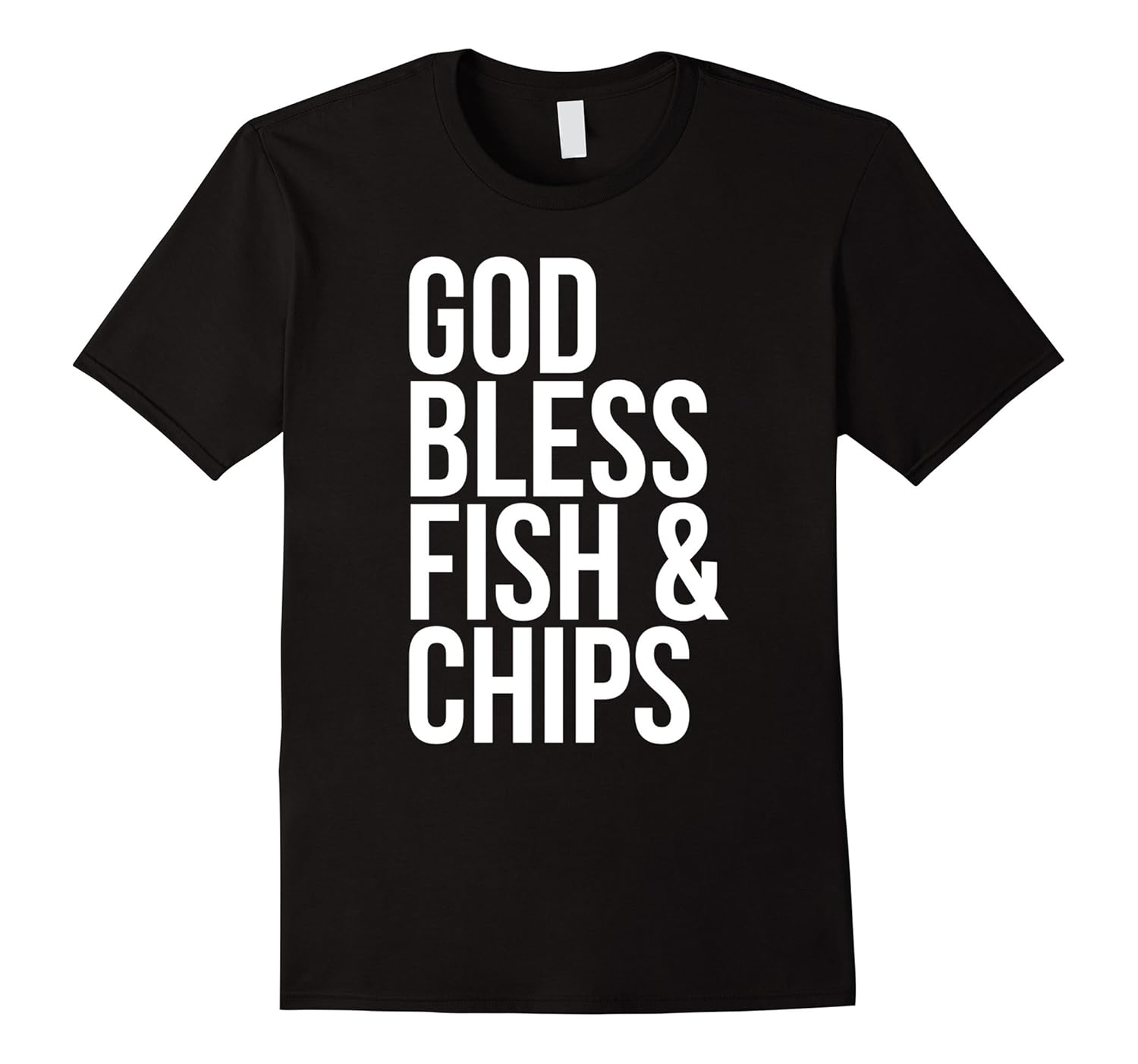 Solid colors: 100% Cotton; Heather Grey: 90% Cotton, 10% Polyester; All Other Heathers: 65% Cotton, 35% Polyester, Imported, Machine wash cold with like colors, dry low heat, Funny fish and chips T-shirt for fish and; chip lovers, GOD BLESS FISH and; CHIPS tee shirt, Funny gift for someone who likes or loves fish and chips, fish and chip shops, chippy shops, chippies, Lightweight, Classic fit, Double-needle sleeve and bottom hem