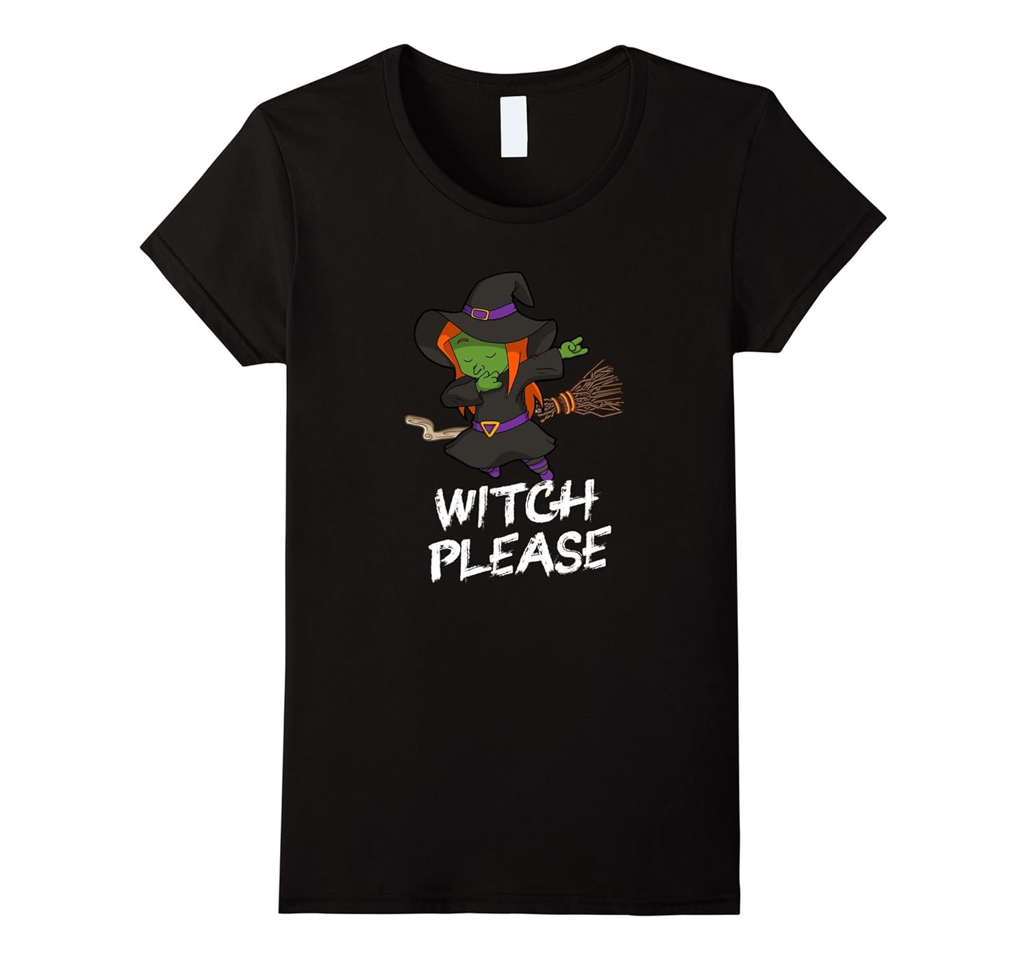 Solid colors: 100% Cotton; Heather Grey: 90% Cotton, 10% Polyester; All Other Heathers: 65% Cotton, 35% Polyester, Imported, Machine wash cold with like colors, dry low heat, Be a bad but happy witch this Halloween! Perfect t-shirt for a horror movie night or to go trick or treat with the kids! Moms and teachers will love wearing this graphic tee! No costume required!, Features a cute and wicked witch doing the famous hip hop dab dance move with her broomstick and a funny Halloween pun. Available in adult (women) and toddler and children (girls) sizes!, Lightweight, Classic fit, Double-needle sleeve and bottom hem