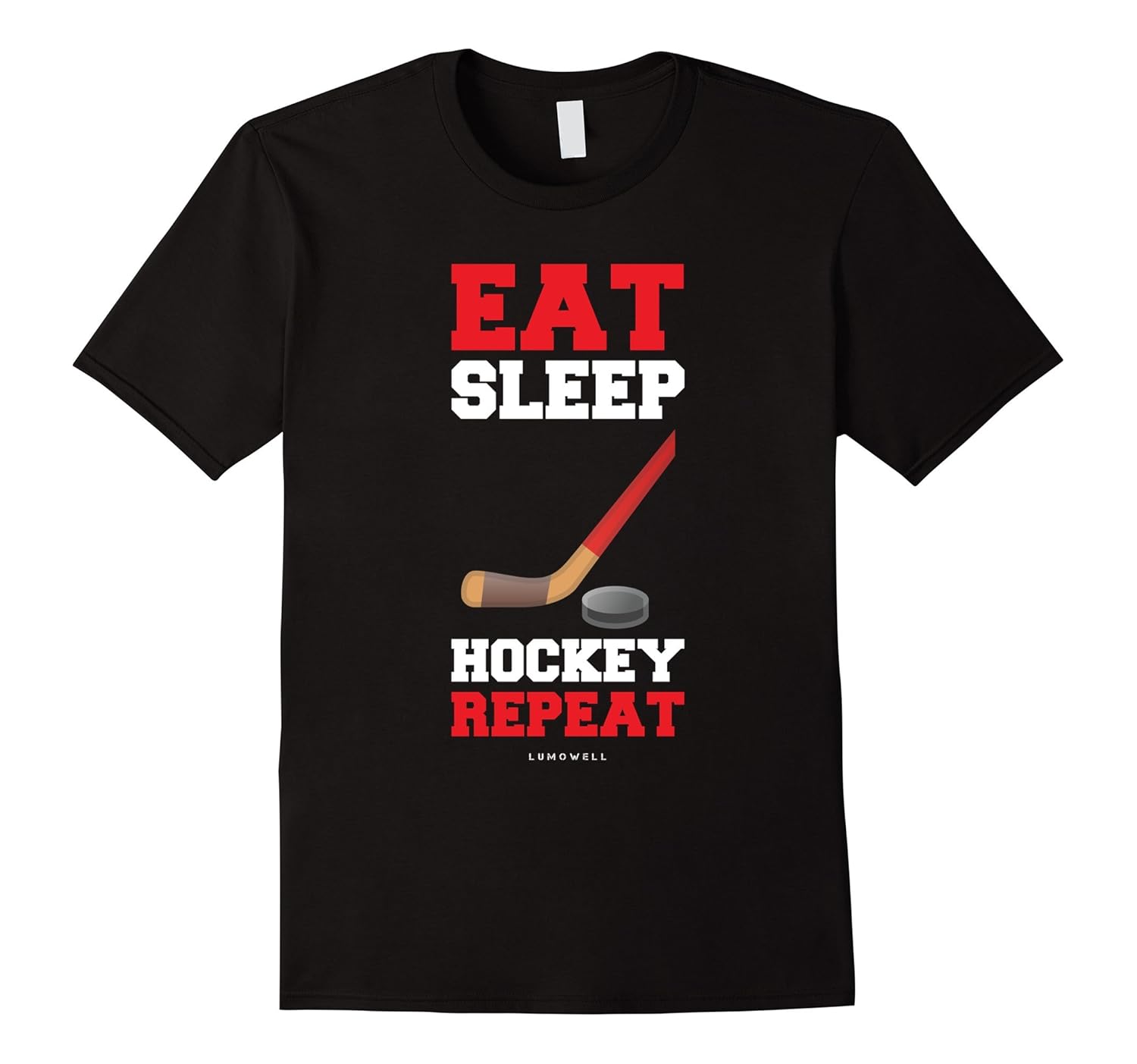 Solid colors: 100% Cotton; Heather Grey: 90% Cotton, 10% Polyester; All Other Heathers: 65% Cotton, 35% Polyester, Imported, Machine wash cold with like colors, dry low heat, Funny Hockey T-Shirts: Eat Sleep Hockey Repeat Shirts for men and for women, for boys and girls and for kids and baby. Funny hockey shirts with sayings by LUMOWELL. This t shirt is a great gift for hockey lovers and players and for those who really like funny hockey t-shirts with quotes. These funny hockey shirts are fitted, for a looser fit please order a size larger than typical. (TShirt ID: S002291), Lightweight, Classic fit, Double-needle sleeve and bottom hem