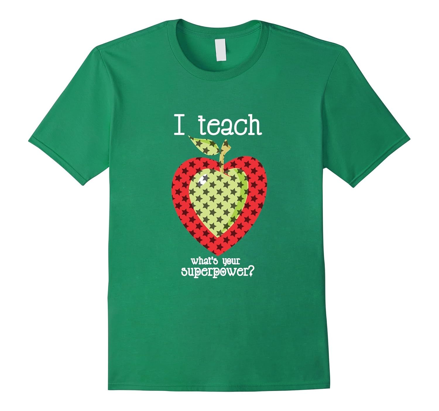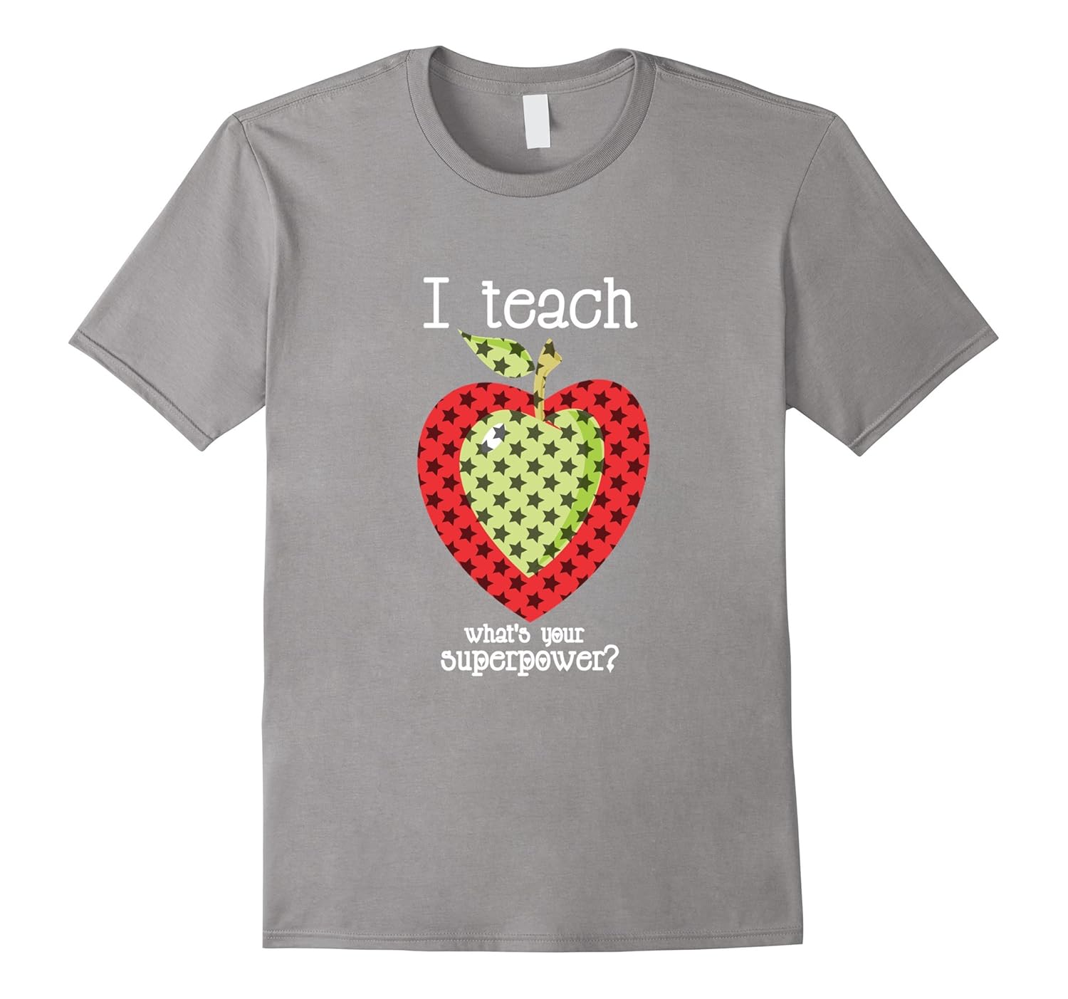 Solid colors: 100% Cotton; Heather Grey: 90% Cotton, 10% Polyester; All Other Heathers: 65% Cotton, 35% Polyester; Imported; Machine wash cold with like colors, dry low heat; Funny I teach whats your superpower teacher T-shirt.; Funny teacher shirt.; Lightweight, Classic fit, Double-needle sleeve and bottom hem