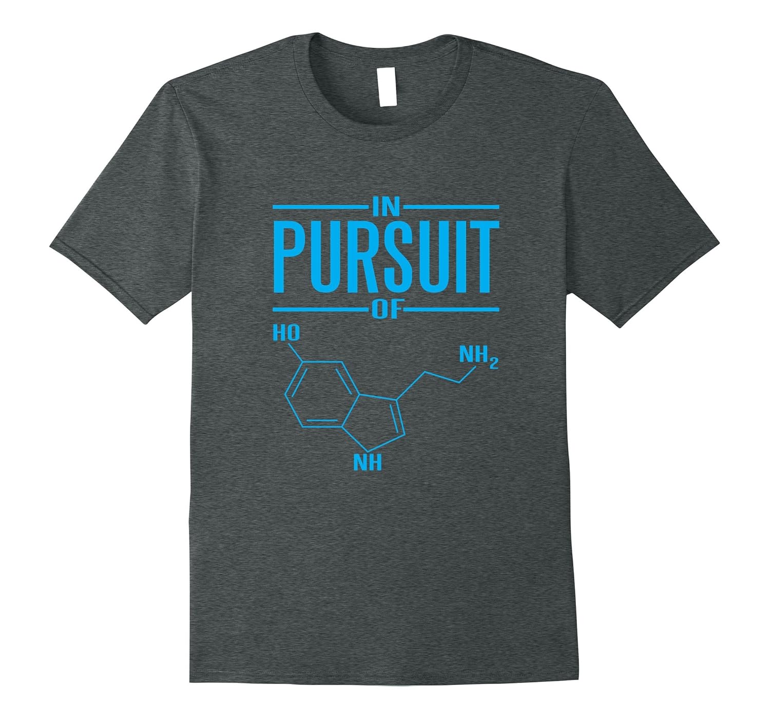 Solid colors: 100% Cotton; Heather Grey: 90% Cotton, 10% Polyester; All Other Heathers: 65% Cotton, 35% Polyester, Imported, Machine wash cold with like colors, dry low heat, Are you a chemistry student or professor. Show off your organic chemistry knowledge with this serotonin molecule – the chemical that makes us happy! Give this as a gift to all happy and smart people you know and educate people about chemistry humor!, Funny In Pursuit Of Happiness Serotonin Chemistry T-Shirt is designed and printed to be fitted. If you prefer a looser fit please order one size larger. Lightweight, Classic fit, Double-needle sleeve and bottom hem
