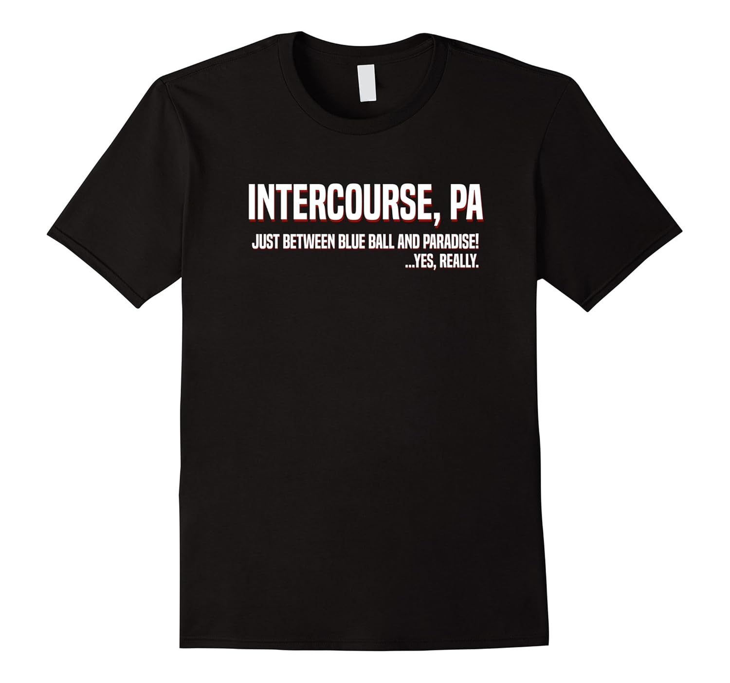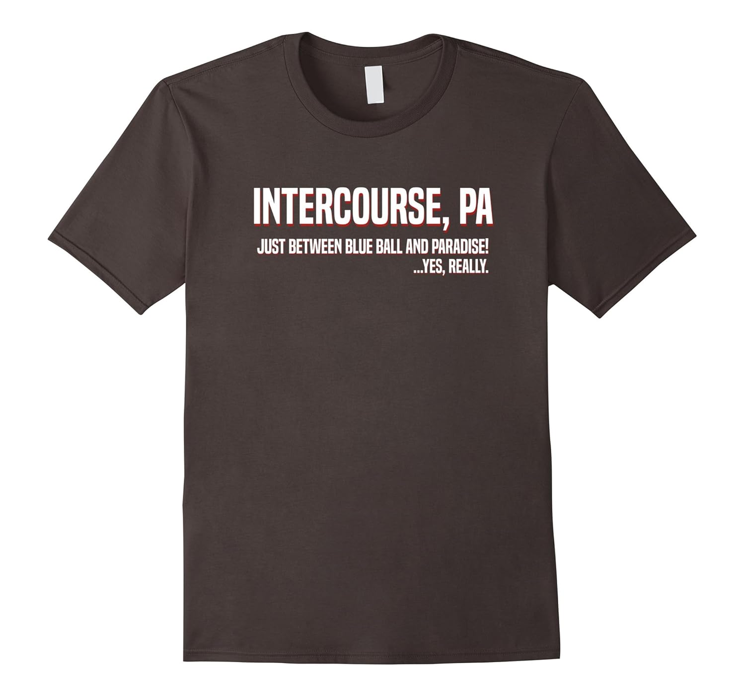 Solid colors: 100% Cotton; Heather Grey: 90% Cotton, 10% Polyester; All Other Heathers: 65% Cotton, 35% Polyester, Imported, Machine wash cold with like colors, dry low heat, Intercourse PA Between Blue Ball and Paradise…Yes, Really T-Shirt. If you find yourself in the Lancaster, PA area, don”t miss Intercourse. You”ll find it nestled between Blue Ball and Paradise. This funny Pennsylvania tee would be a great gift!, Designed by TeesTees. Be sure to check out the entire selection of TeesTees apparel for more designs like this and much more. Lightweight, Classic fit, Double-needle sleeve and bottom hem