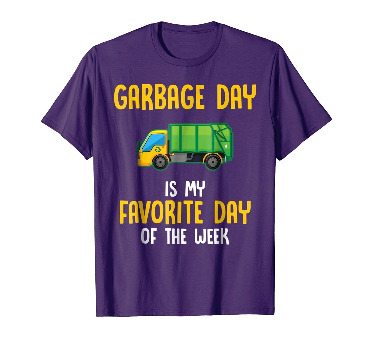 Solid colors: 100% Cotton; Heather Grey: 90% Cotton, 10% Polyester; All Other Heathers: 50% Cotton, 50% Polyester; Imported; Machine wash cold with like colors, dry low heat; When youre so excited for the garbage day, wear this shirt when they are coming! Garbage day means cleaning all your trash. Coolest and weird love for garbage day is an awesome get up for school, malls, parks and family gathering by having this tee.; Featuring a distressed graphic design of a big garbage truck, this shirt Garbage Day Is My Favorite Day Of The Week will surely love by you and everyone you know.Perfect top for pajamas and sleeping shorts.Purchase now and for a baggy fit order a size up!; Lightweight, Classic fit, Double-needle sleeve and bottom hem