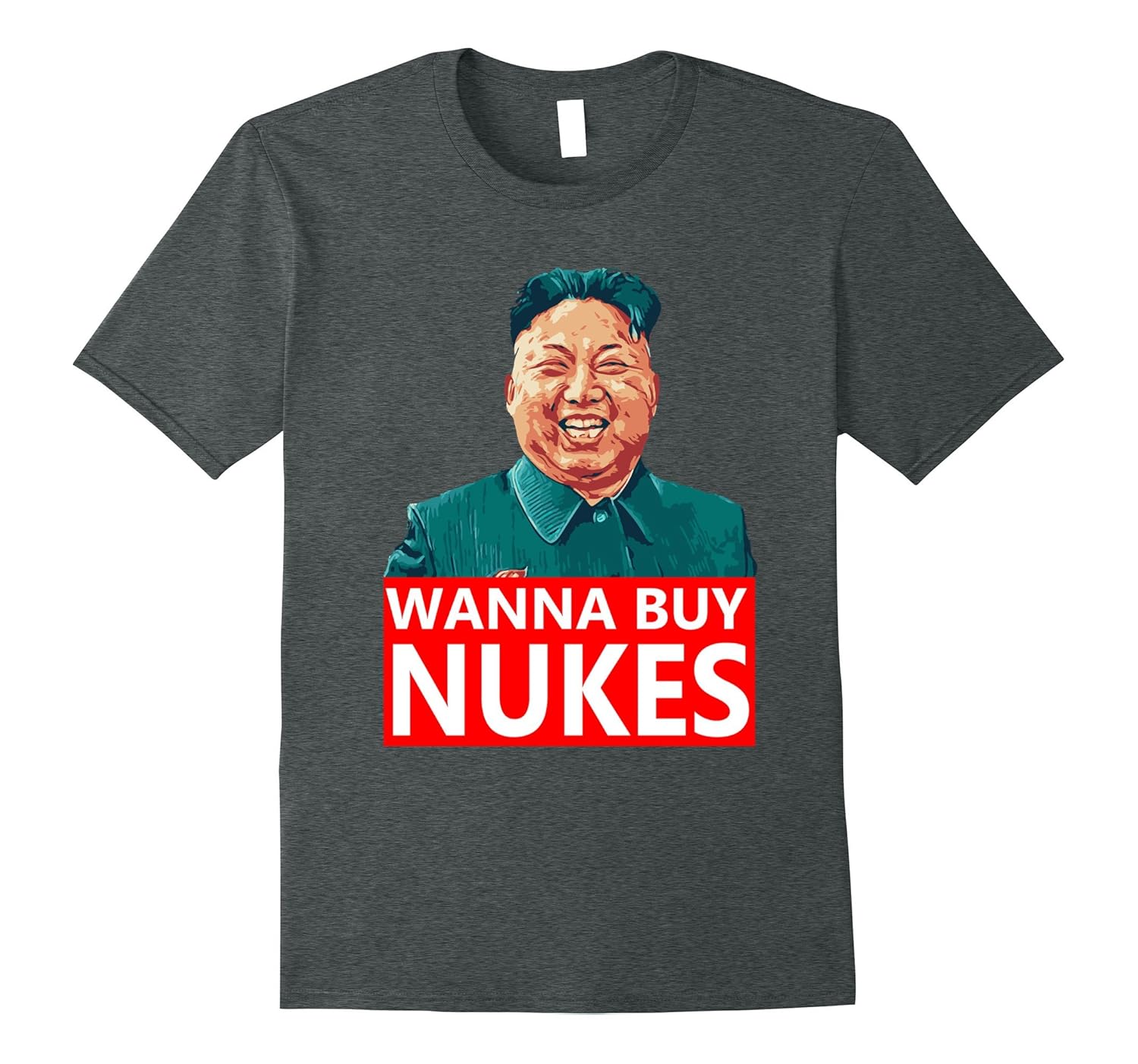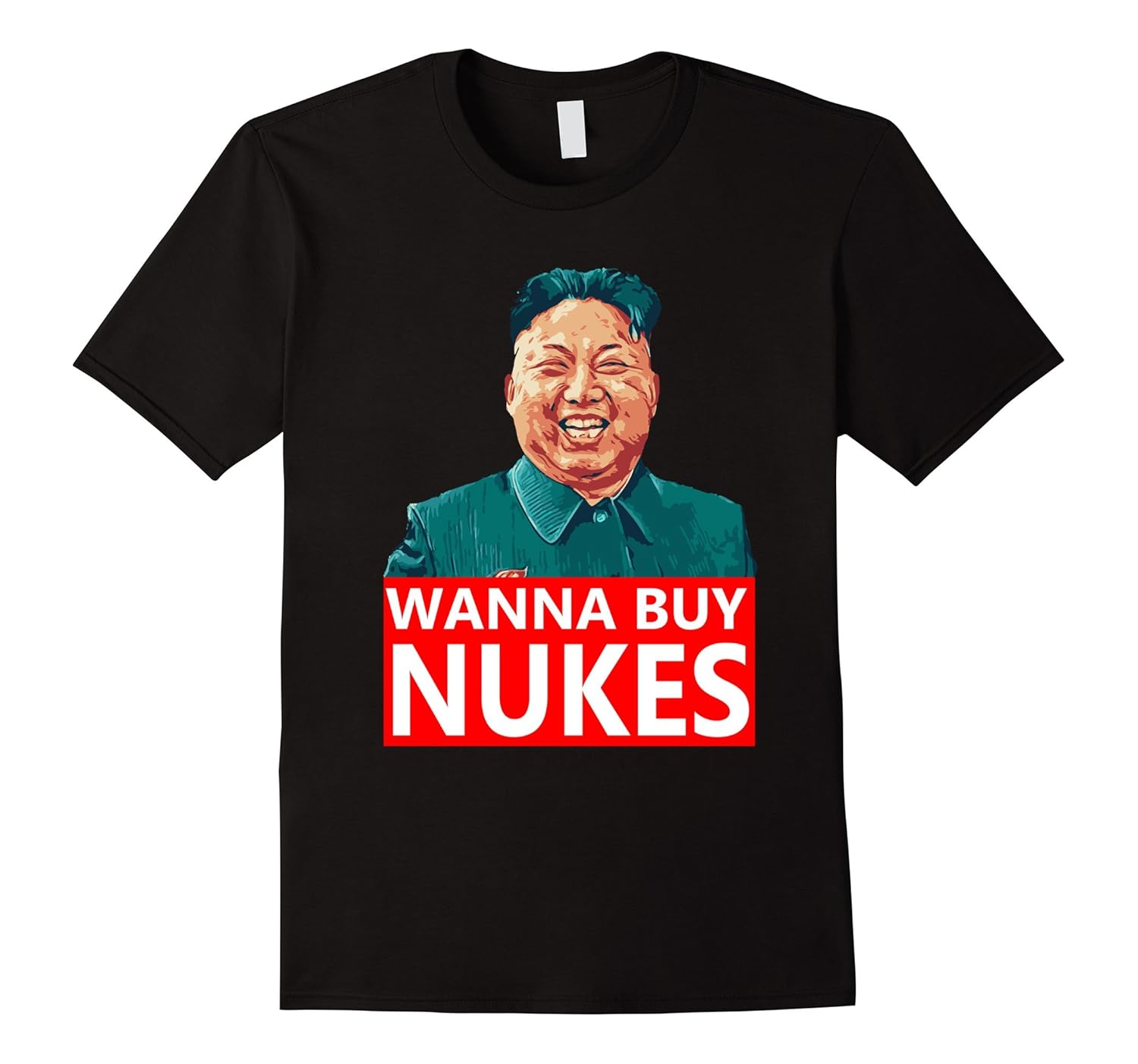 Solid colors: 100% Cotton; Heather Grey: 90% Cotton, 10% Polyester; All Other Heathers: 65% Cotton, 35% Polyester, Imported, Machine wash cold with like colors, dry low heat, Funny Dear Leader Kim Jong Un Wanna Buy Nukes Political Tee Funny Trump Halloween Shirt, Funny Political Tee Gift, Kim Jong Un of North Korea has been called Rocketman by President Donald Trump. While this might sound funny and cool it”s not as the politics are quite unstable. Tee features the Leader of North Korea”s face on a shirt with a text saying “Wanna buy nukes”, Lightweight, Classic fit, Double-needle sleeve and bottom hem