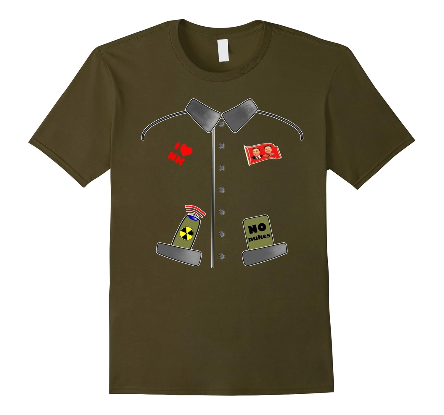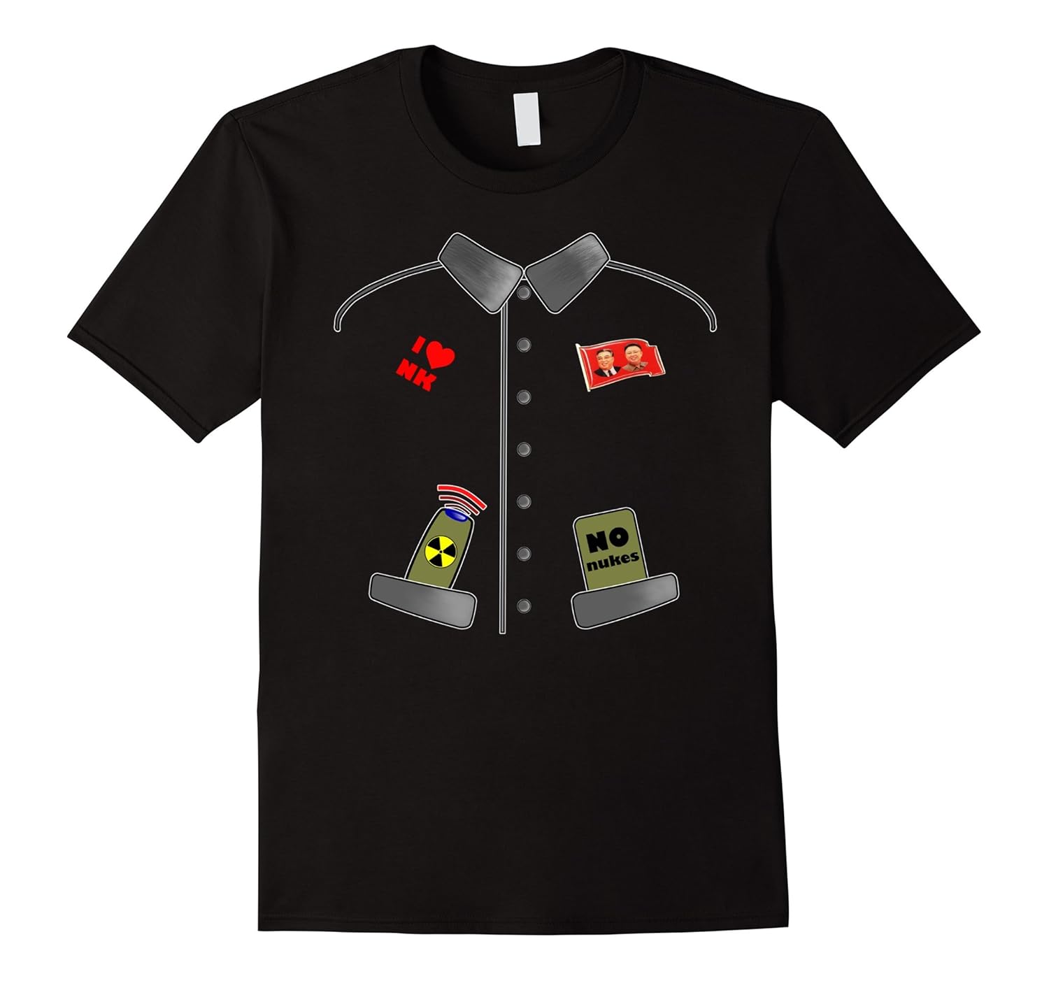 Solid colors: 100% Cotton; Heather Grey: 90% Cotton, 10% Polyester; All Other Heathers: 65% Cotton, 35% Polyester; Imported; Machine wash cold with like colors, dry low heat; No Nuclear War! Trump and Putin against Supreme Leader of DPRK Kim Jong-Un. Rocket Man spreads national ideology Juche. US President and Chairman of the Workers Party of Korea will destroy the humankind. Get this t shirt for family, friends or as a gift!; For a loose fit of No Nukes Just Juche TShirt, please order a size up. Great idea as a christmas thanksgiving couple matching costume! Click the brand name for more cute and scary shirts of Democratic Peoples Republic!; Lightweight, Classic fit, Double-needle sleeve and bottom hem
