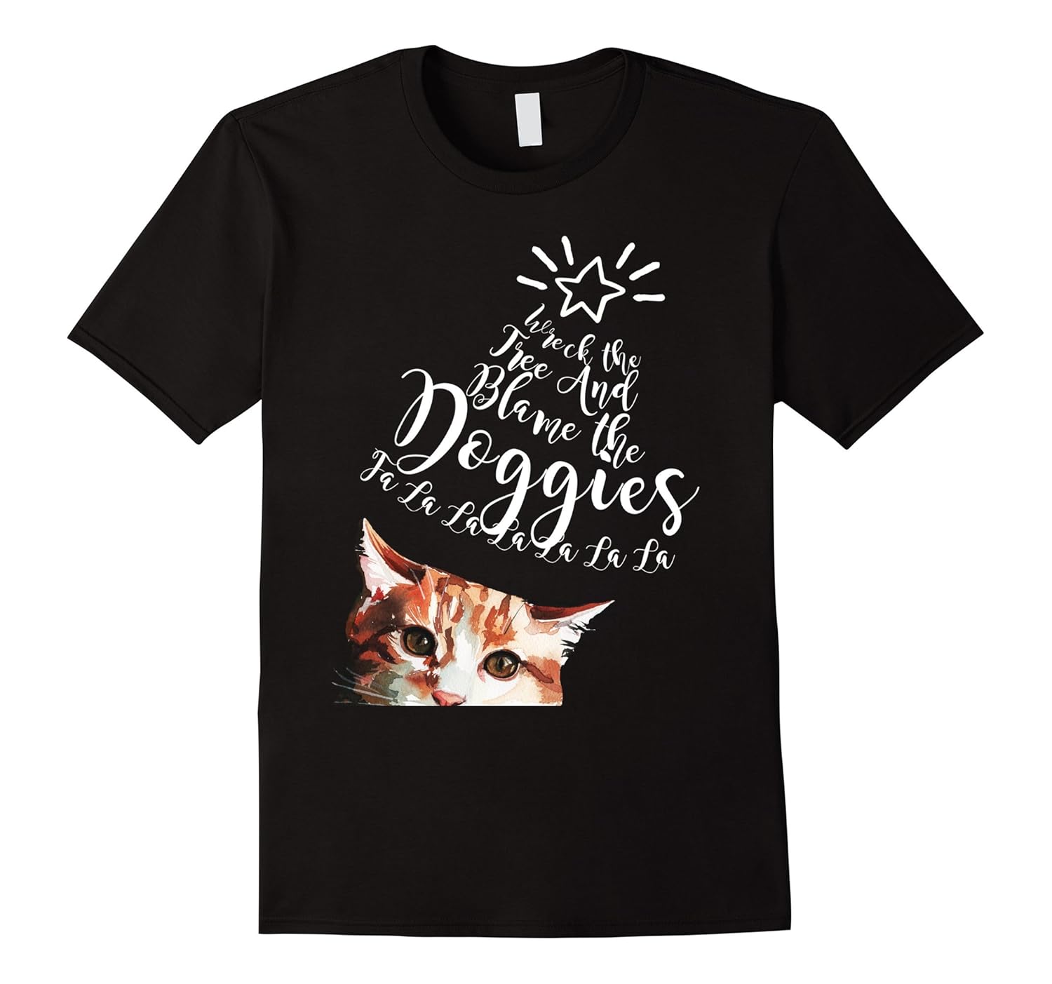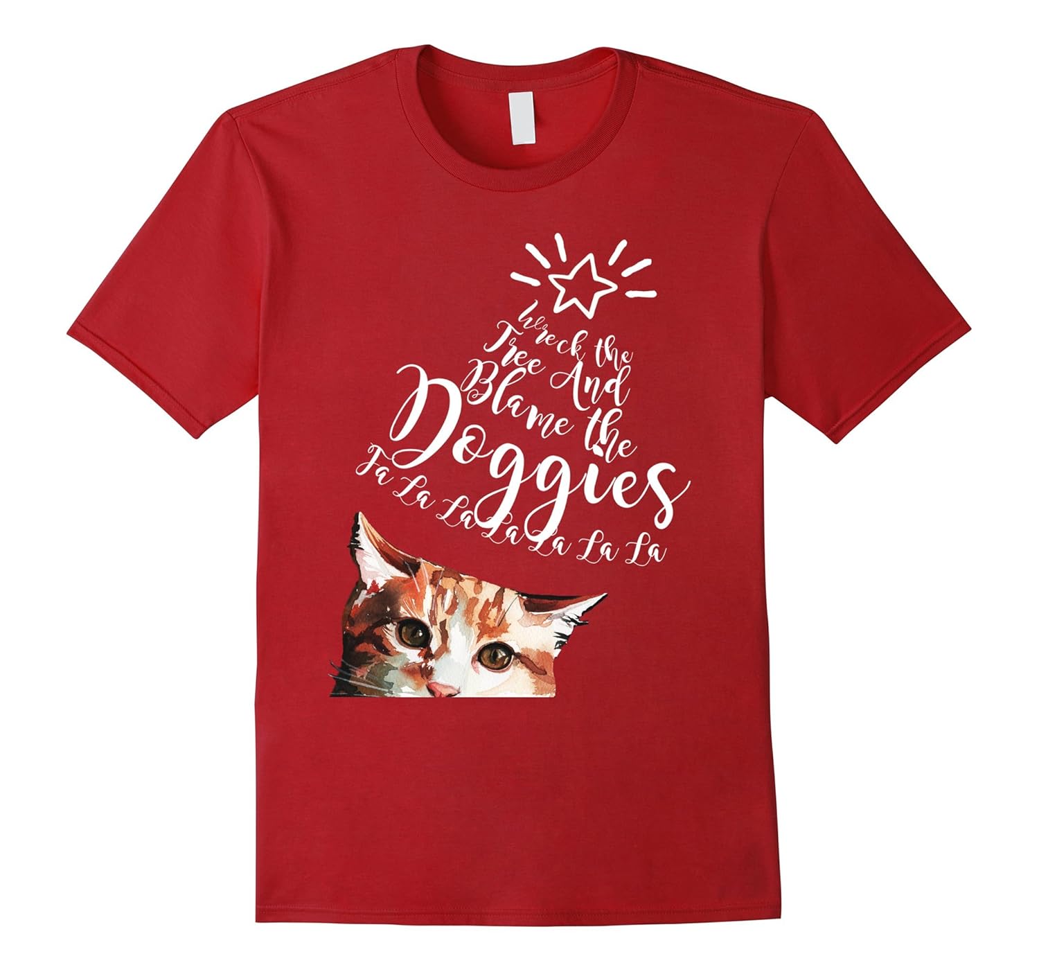 Solid colors: 100% Cotton; Heather Grey: 90% Cotton, 10% Polyester; All Other Heathers: 65% Cotton, 35% Polyester, Imported, Machine wash cold with like colors, dry low heat, Funny cats wreck the Christmas Tree Cat Shirt. If you are a cat lover and looking for a Christmas Holiday shirt then this shirt is perfect for you. Cats love christmas trees and holiday ornaments and of course they blame it on the dogs!, Lightweight, Classic fit, Double-needle sleeve and bottom hem
