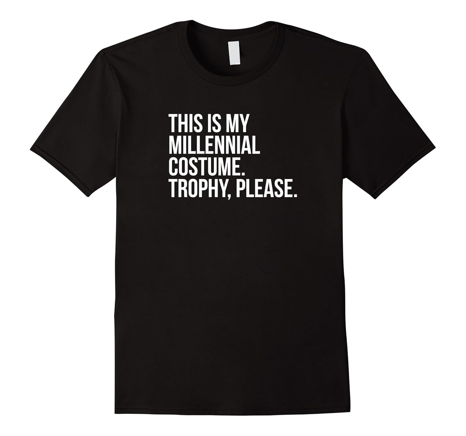 Solid colors: 100% Cotton; Heather Grey: 90% Cotton, 10% Polyester; All Other Heathers: 65% Cotton, 35% Polyester, Imported, Machine wash cold with like colors, dry low heat, SLIM FIT SIZE UP FOR LOOSER FIT. Funny easy last minute halloween costume. Millennials and hipsters might enter that costume party contest and just expect that trophy. This funny gag gift joke t-shirt is perfect to pair with hipster glasses or vintage hats, This is my millennial costume. Trophy please. If you are gen x or a baby boomer and are tired of millennails, be one for Halloween. Whine and demand that trophy, you earned it! Wear this snarky sarcastic t-shirt year round and be ready for the laughs. Lightweight, Classic fit, Double-needle sleeve and bottom hem