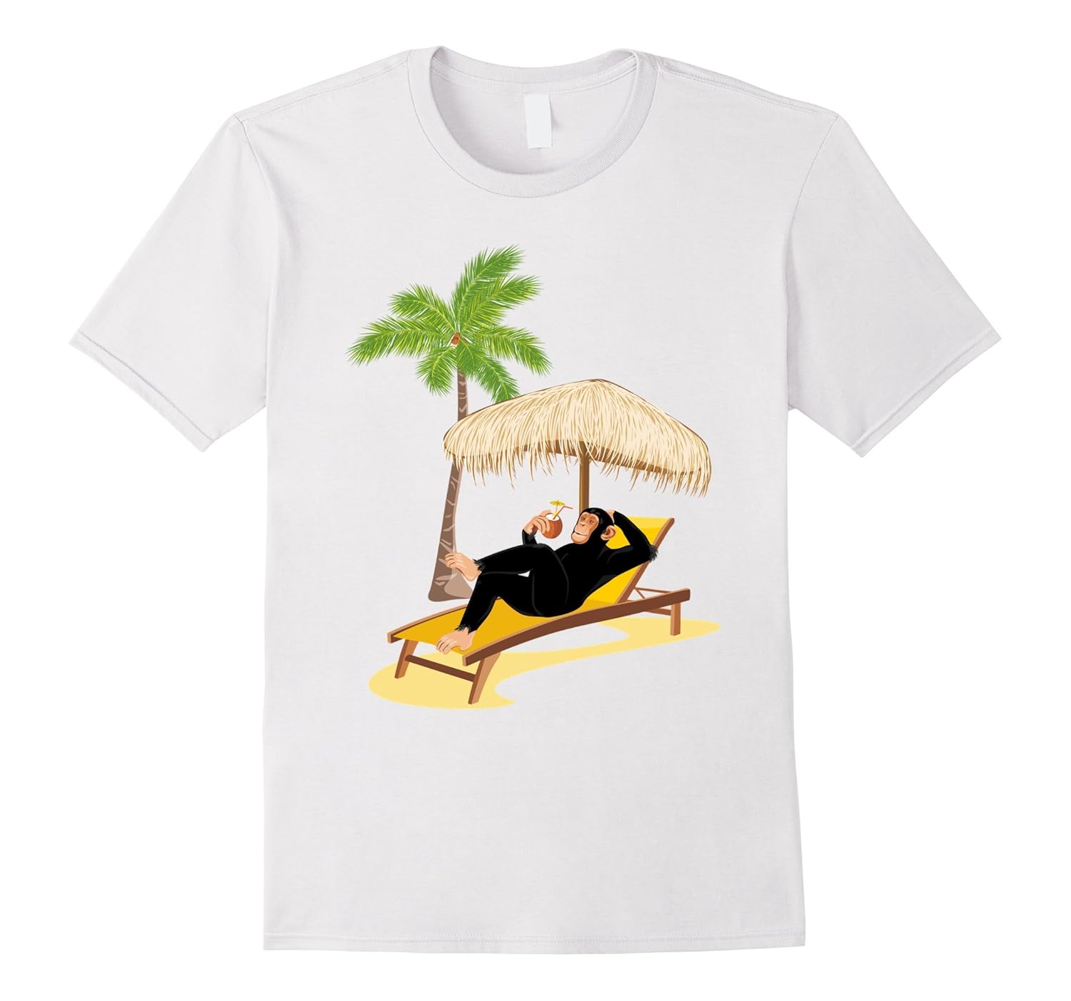 Funny monkey shirt – Chimp relaxing under palm on the beach-ANZ