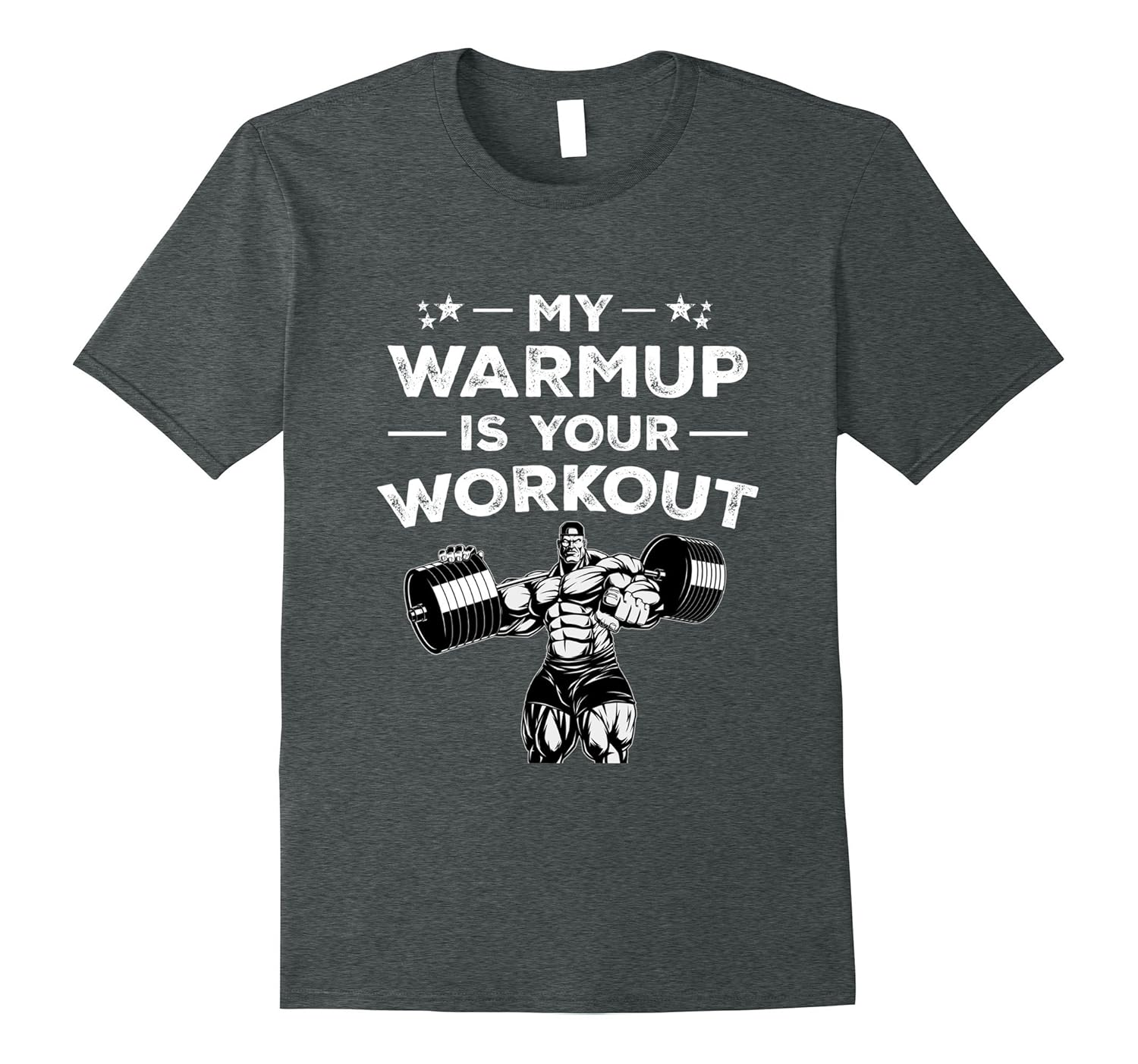 Solid colors: 100% Cotton; Heather Grey: 90% Cotton, 10% Polyester; All Other Heathers: 65% Cotton, 35% Polyester, Imported, Machine wash cold with like colors, dry low heat, You love bodybuilding and your daily workout. Then this motivational gym shirt is perfect for you! Because your warmup is their workout. You train hard for that gains and you can show your muscles. For a looser fit please order a size up. shirt, tee, tshirt, present, gift, gym, motivation, fitness, muscle, train hard, workout, warmup, my warmup is your workout, bar, bench press,, Lightweight, Classic fit, Double-needle sleeve and bottom hem