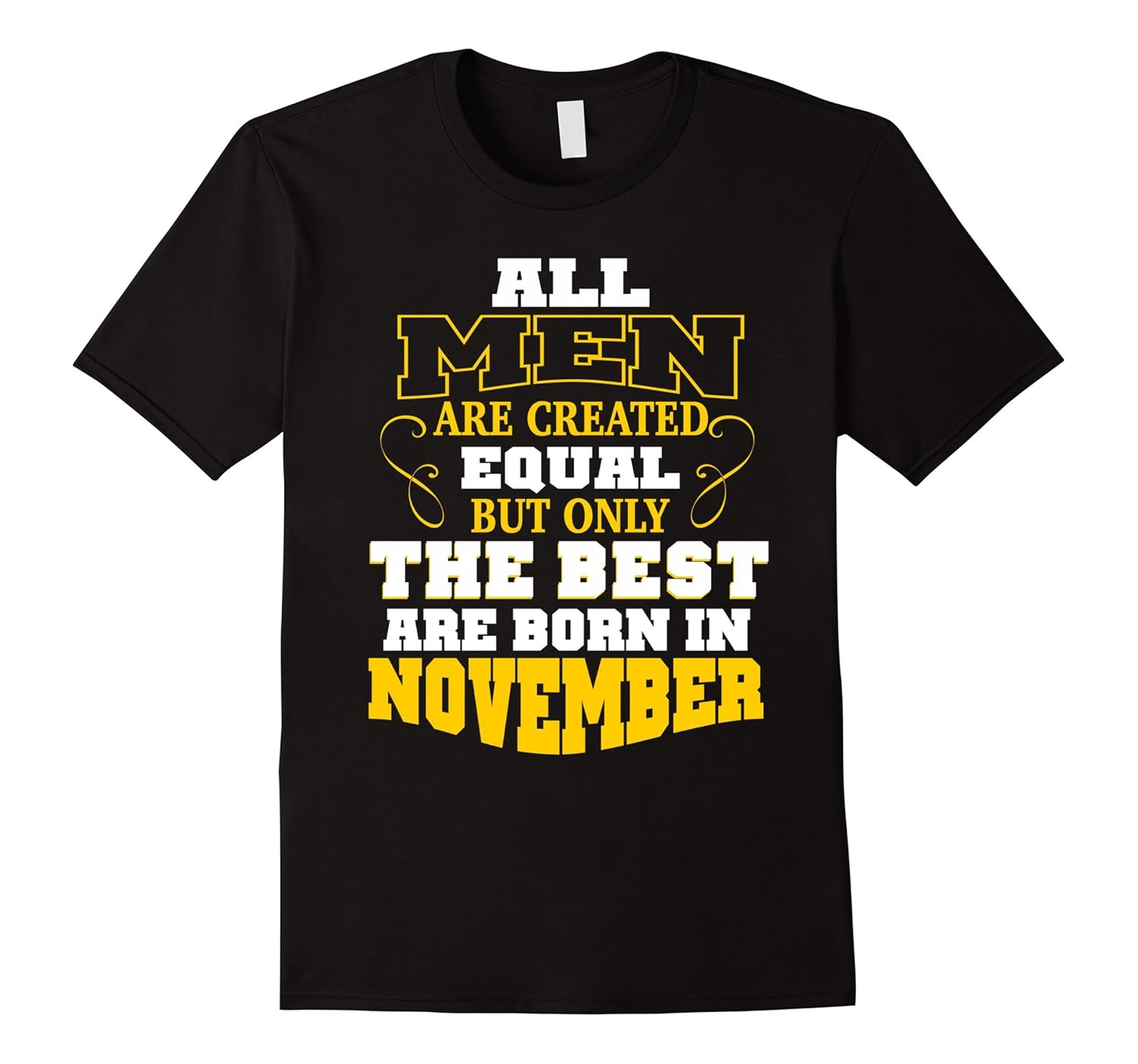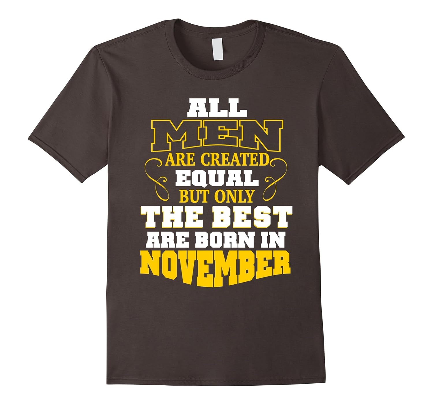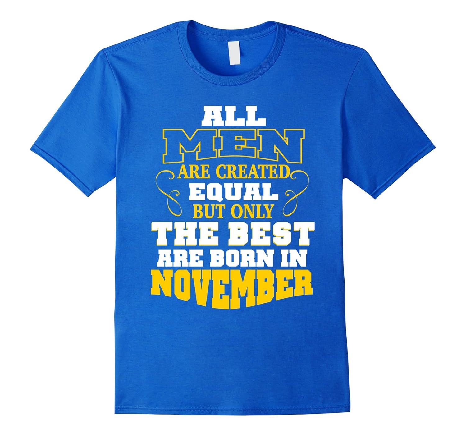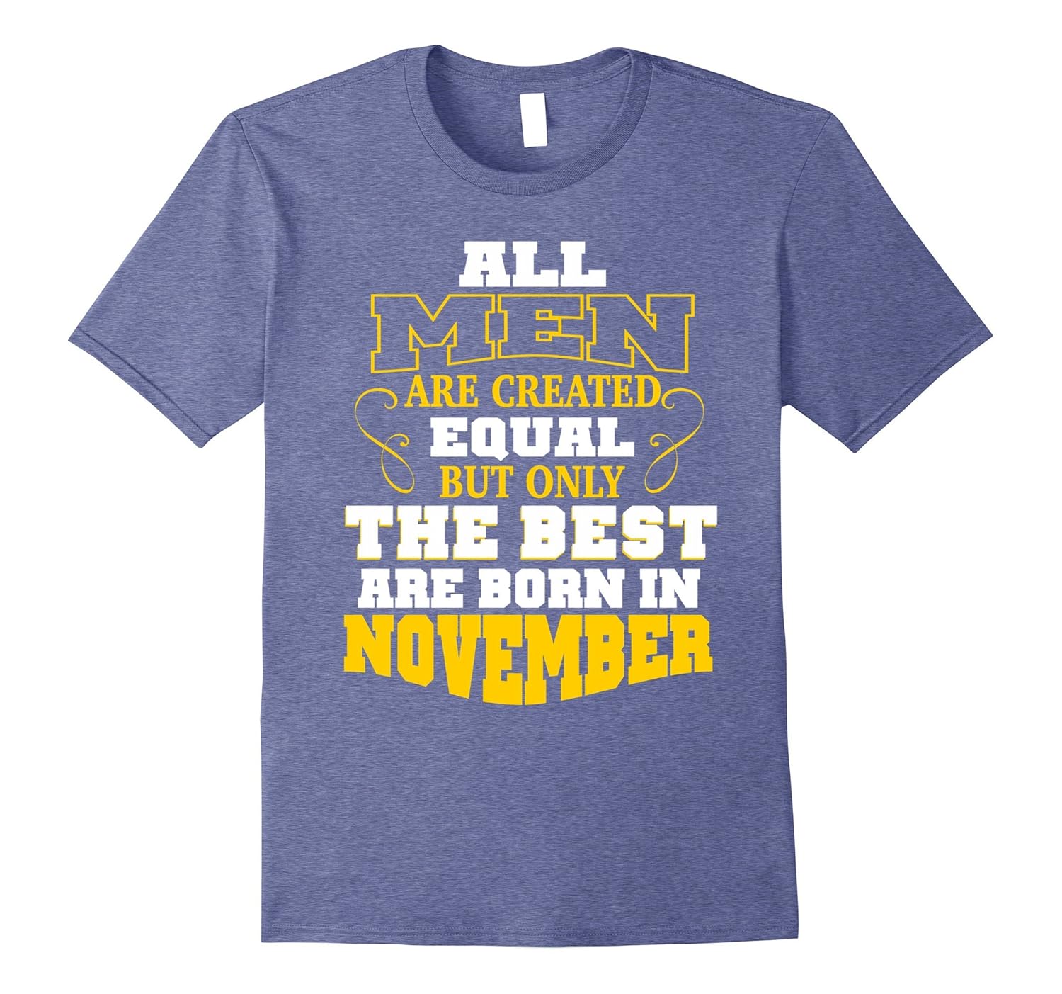 Solid colors: 100% Cotton; Heather Grey: 90% Cotton, 10% Polyester; All Other Heathers: 65% Cotton, 35% Polyester, Imported, Machine wash cold with like colors, dry low heat, ALL MEN ARE CREATED EQUAL, BUT ONLY THE BEST ARE BORN IN NOVEMBER: This is a great birthday gift for anyone born in November. The shirt is awesome, and is guaranteed to get a lot of compliments from friends and family. T-shirt is durable and comfortable enough to be worn at home, school, or when hanging out with friends. This t-shirt is a relaxed fit – please refer to the sizing chart on the left before purchasing. Funny gift from mom, dad, siblings or friends. Lightweight, Classic fit, Double-needle sleeve and bottom hem