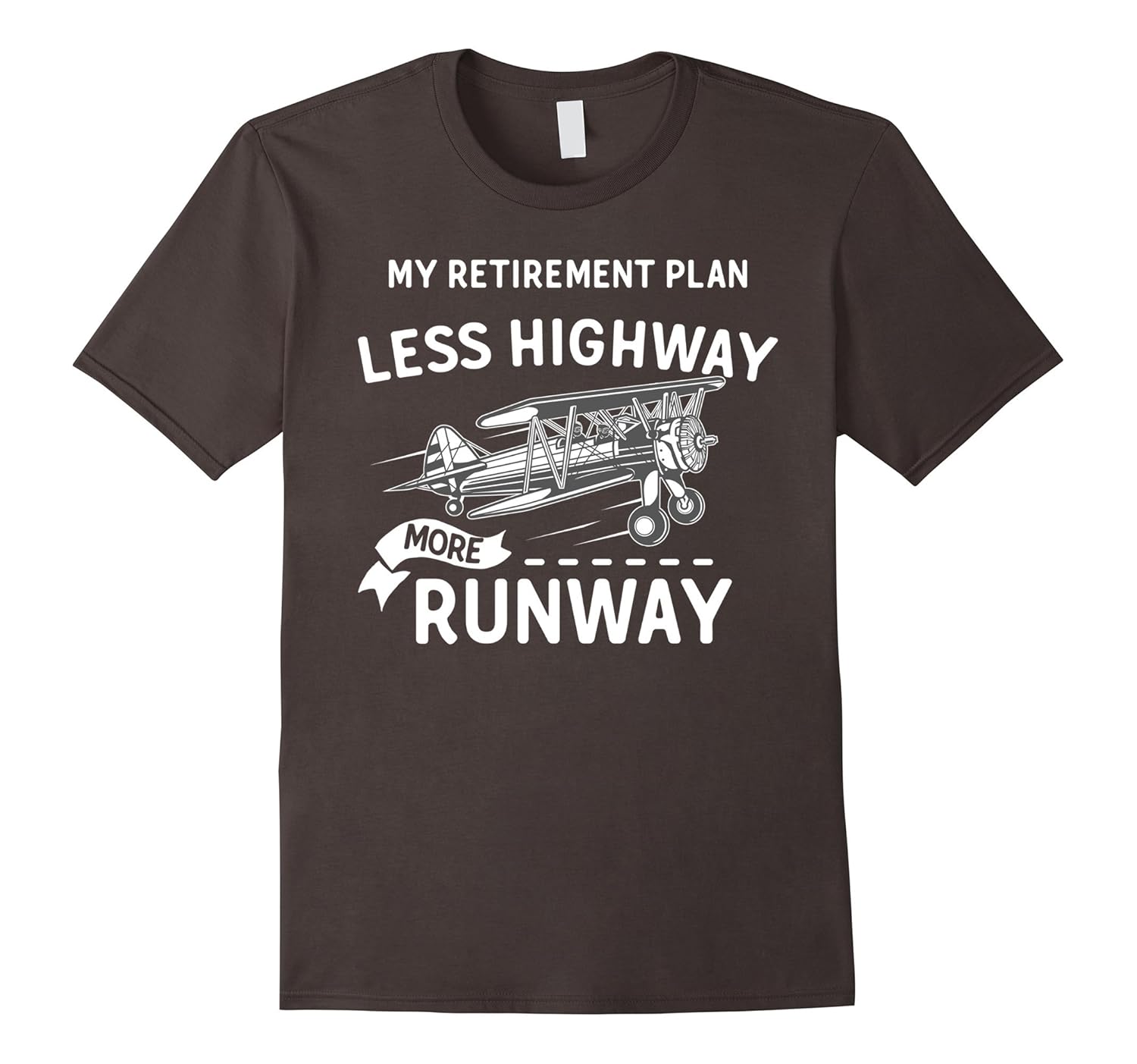 Solid colors: 100% Cotton; Heather Grey: 90% Cotton, 10% Polyester; All Other Heathers: 65% Cotton, 35% Polyester, Imported, Machine wash cold with like colors, dry low heat, My Retirement Plan Less Highway More Runway Pilot Shirt. Gift for airplane Pilot. Funny aircraft pilot shirt for men and women who love to fly airplane. Funny pilot shirt. Lightweight, Classic fit, Double-needle sleeve and bottom hem