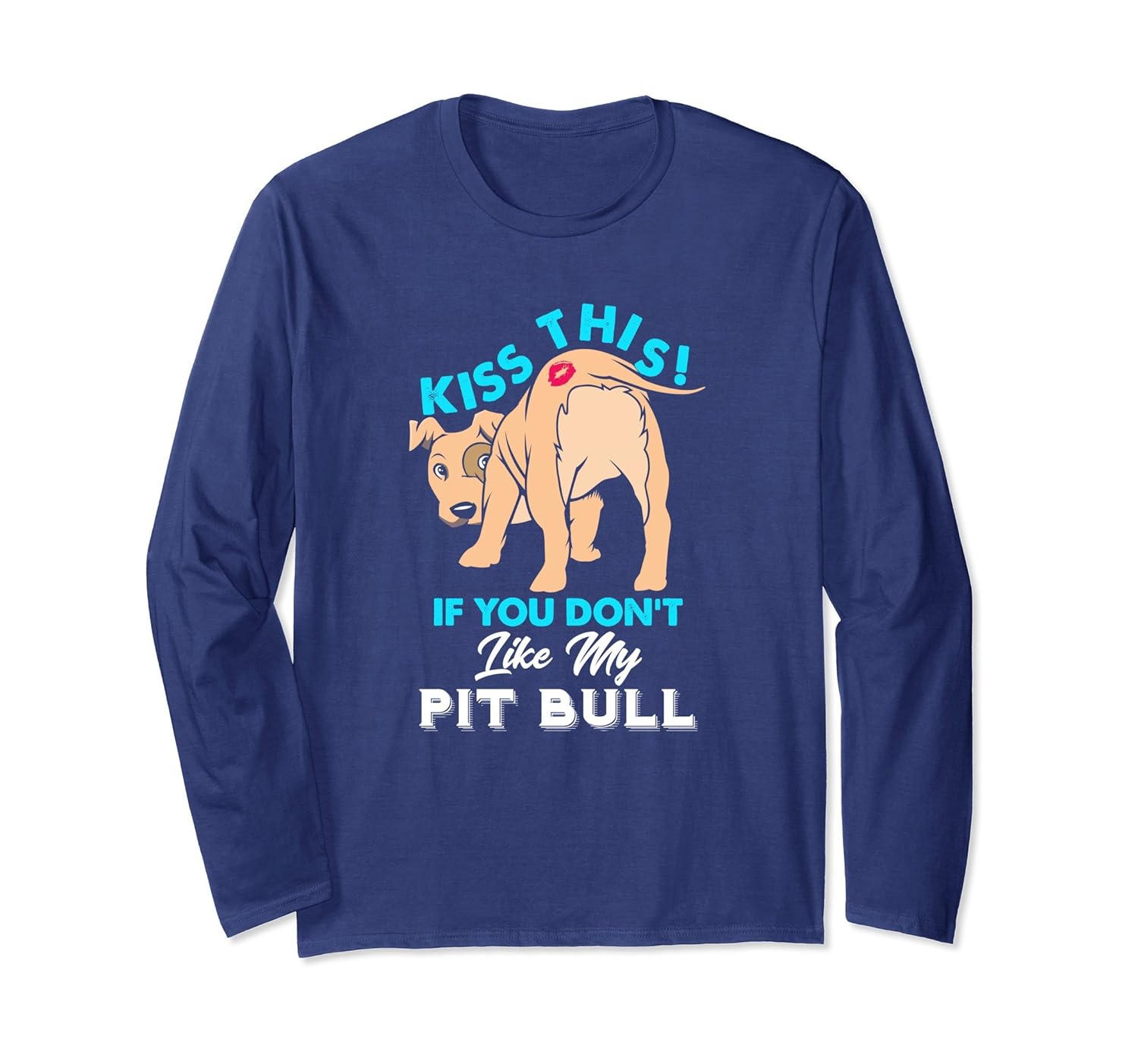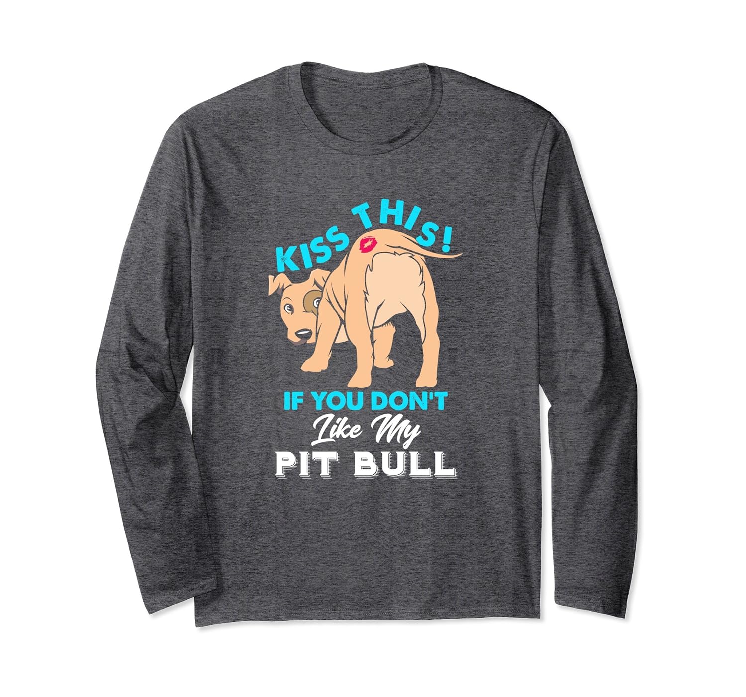 Solid colors: 100% Cotton; Heather Grey: 90% Cotton, 10% Polyester; All Other Heathers: 50% Cotton, 50% Polyester; Imported; Machine wash cold with like colors, dry low heat; Funny Pit Bull Dog Puppy Long Sleeve Tee Shirt – Kiss This if You Dont Like My Pit Bull – You love your Pit and she would never turn on anyone unless she needs to protect you. Be fierce and show how much you love your puppy pal.; Great gift for those who are owned by dogs, dog walkers, vets and anyone who loves canines.; Lightweight, Classic fit, Double-needle sleeve and bottom hem