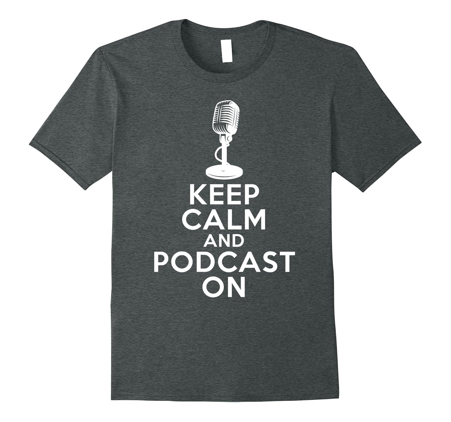 Solid colors: 100% Cotton; Heather Grey: 90% Cotton, 10% Polyester; All Other Heathers: 65% Cotton, 35% Polyester, Imported, Machine wash cold with like colors, dry low heat, This funny podcast t-shirt says “KEEP CALM AND PODCAST ON” and is a perfect gift for any podcaster or podcast fan. If your life is basically “Eat. Sleep. Podcast. Repeat.”, then this tee is perfect for you. If you are a podcast host , a “Podhead” or a real audio junkie, this tee is the perfect choice for you. It”s a nice gift for birthday, Christmas or any other holiday. Lightweight, Classic fit, Double-needle sleeve and bottom hem