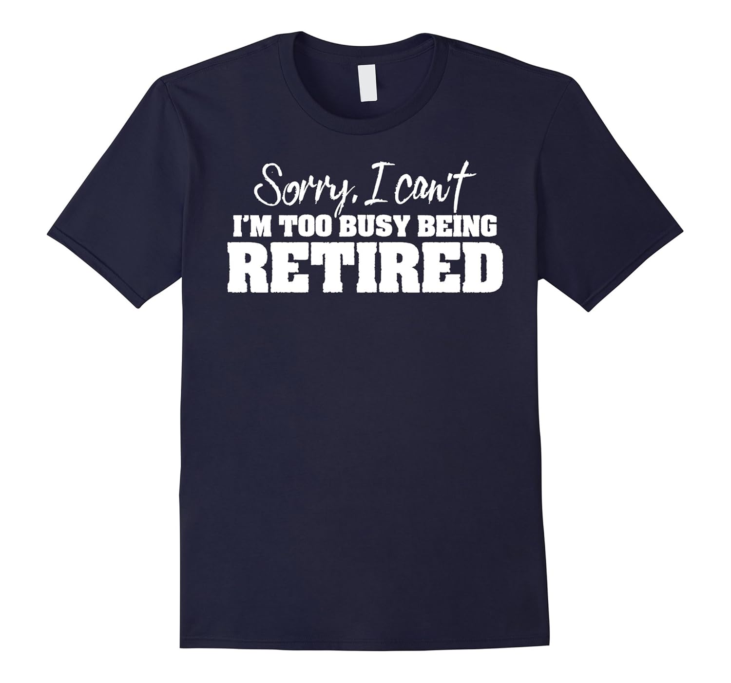 Solid colors: 100% Cotton; Heather Grey: 90% Cotton, 10% Polyester; All Other Heathers: 65% Cotton, 35% Polyester, Imported, Machine wash cold with like colors, dry low heat, Funny retirement shirt for retirees who are enjoying their retirement! Makes a great retirement gift or Christmas present for anyone that loves wearing retirement t-shirts!, Sorry, I can”t. I”m too busy being retired. Funny retired shirt for people who have retired from their job!, Lightweight, Classic fit, Double-needle sleeve and bottom hem