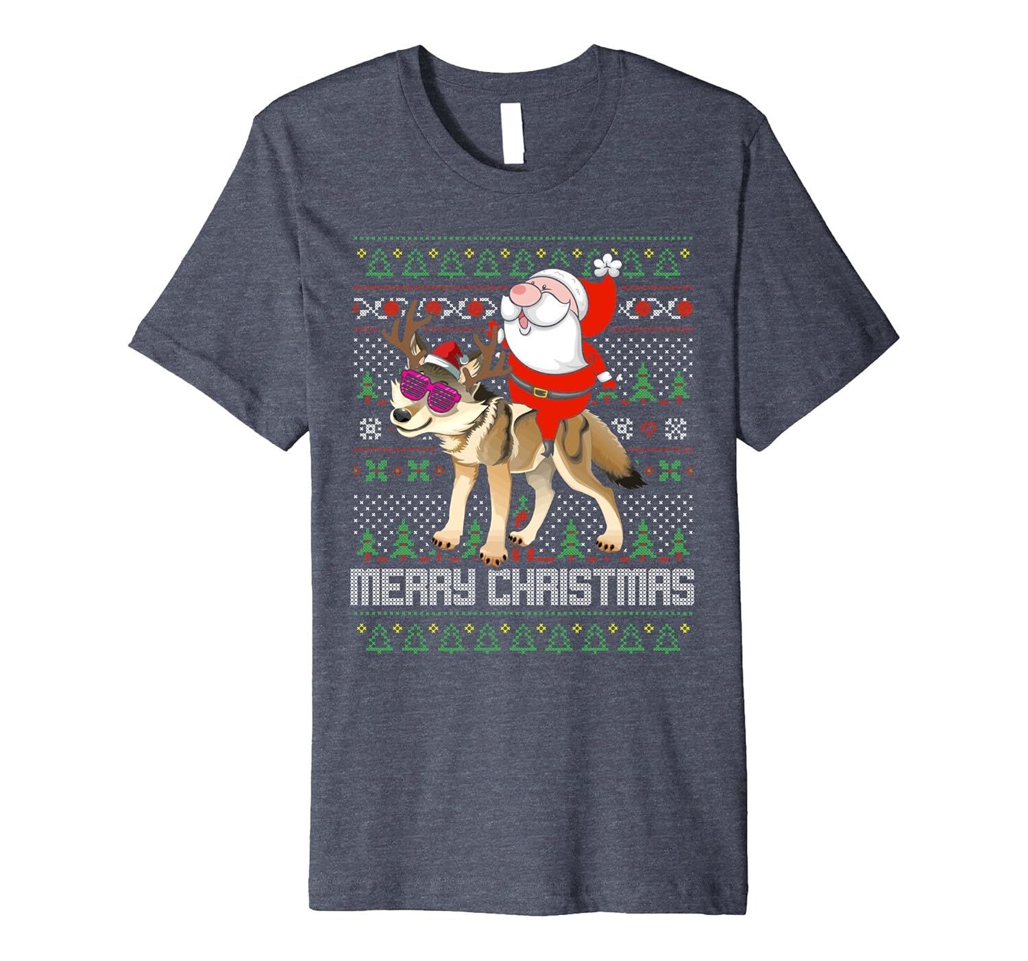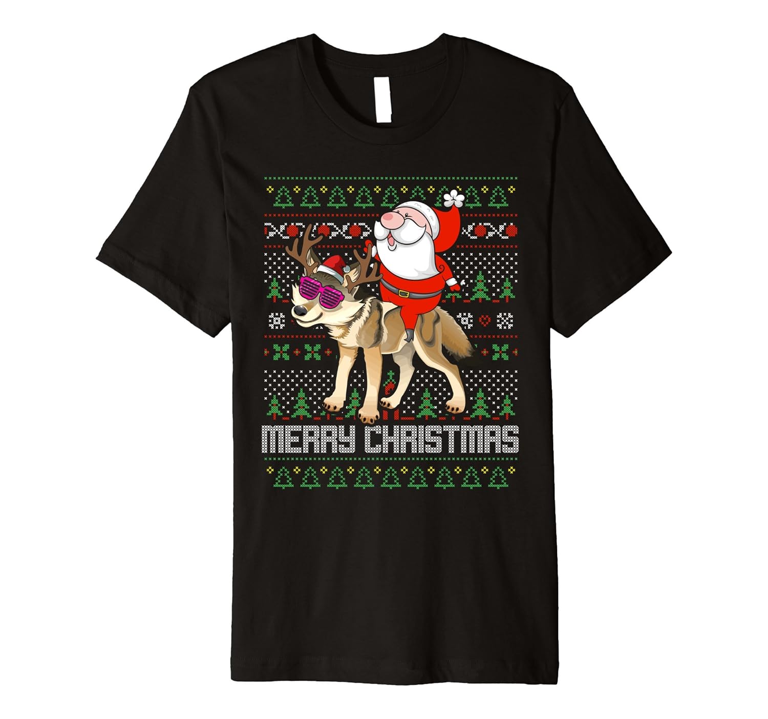 Funny Santa Claus Tshirt Wolf Merry Xmas Ugly Christmas Gift-ANZ