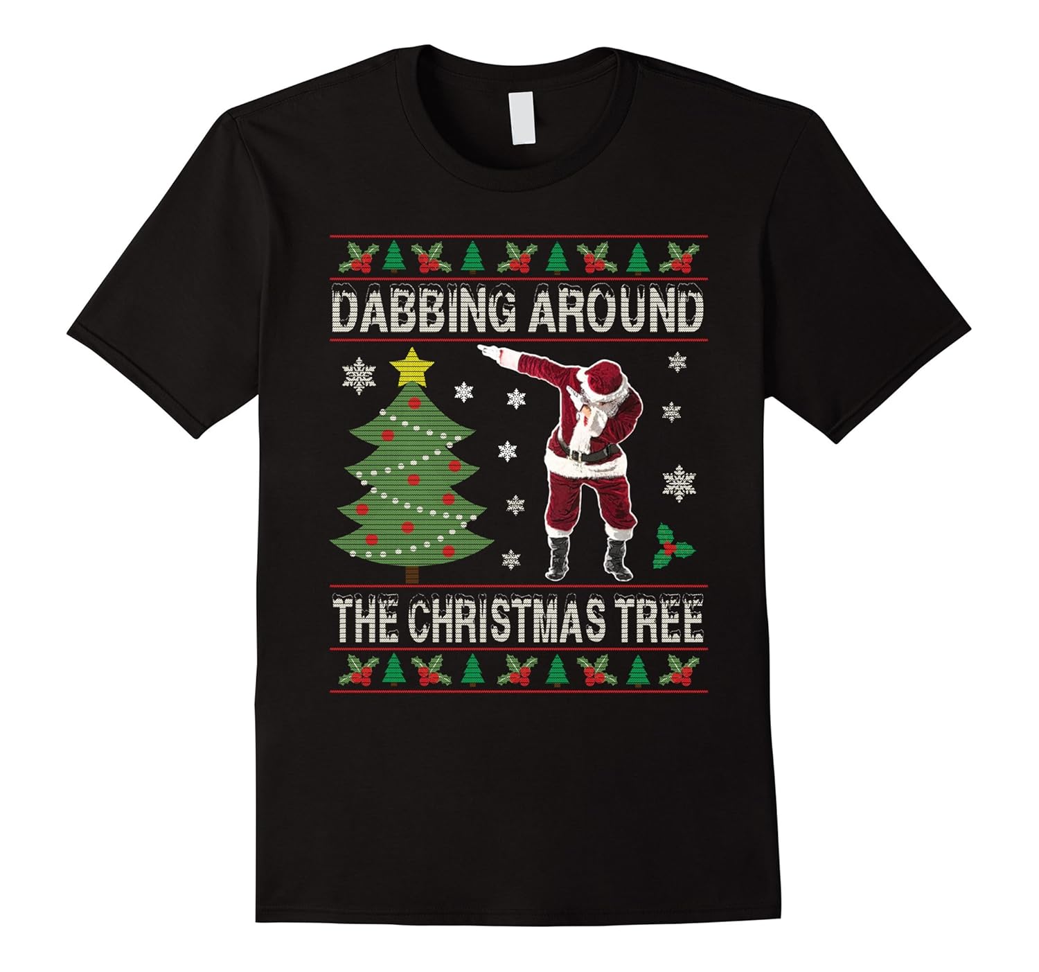 Funny Santa Dabbing Around Christmas Tree Ugly TShirt 2-ANZ