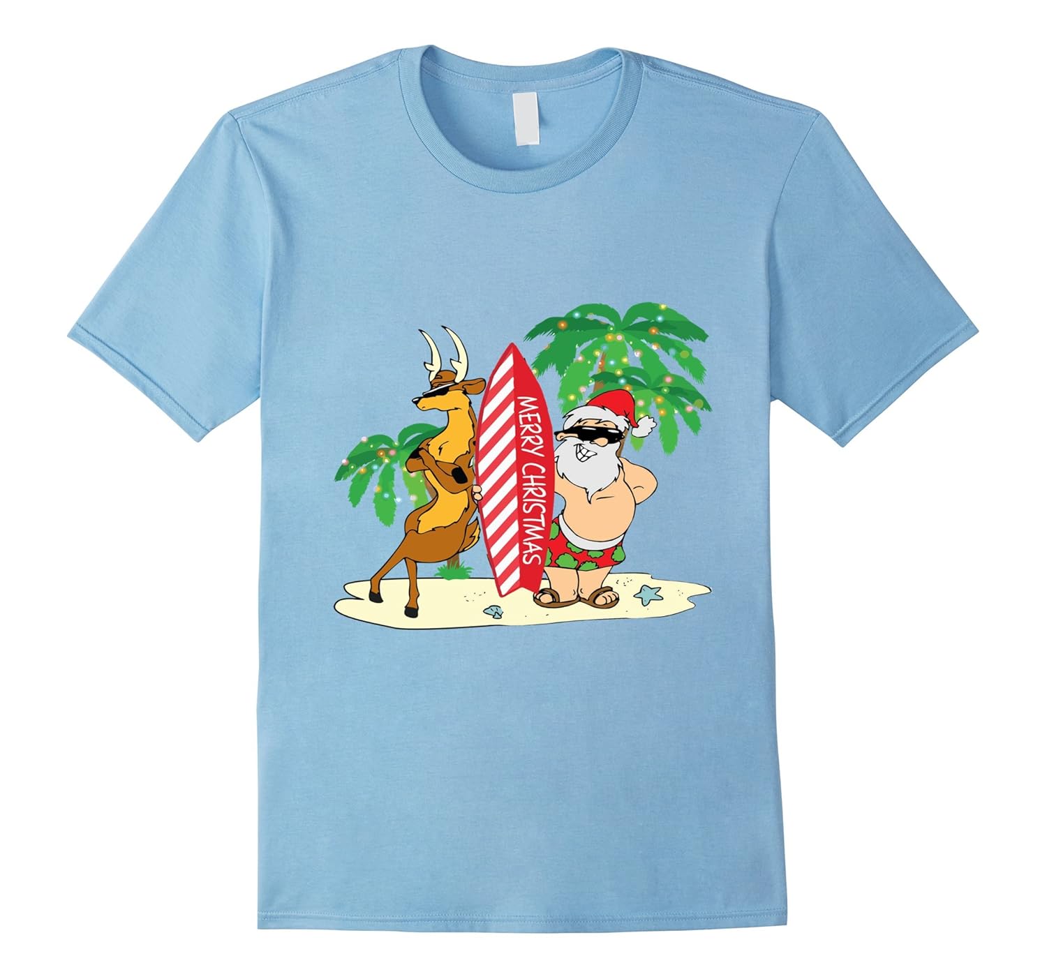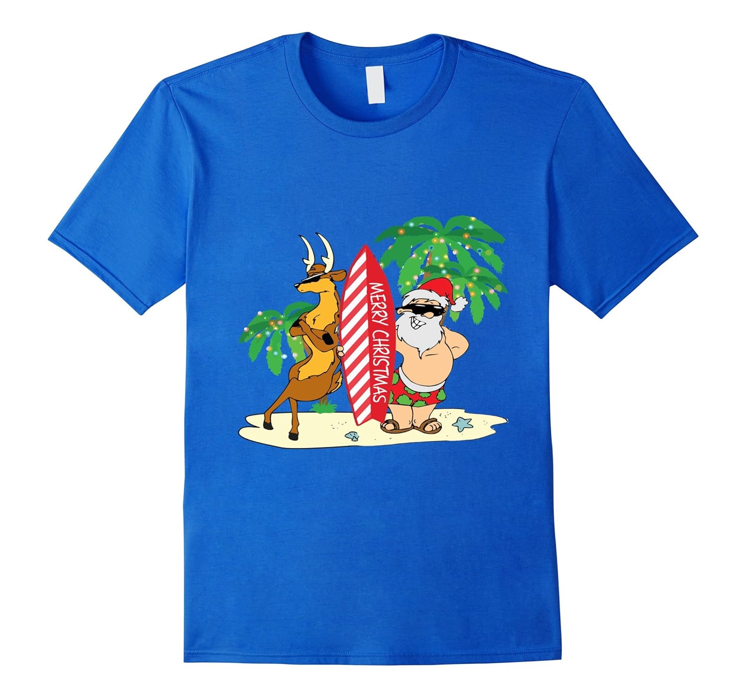 Funny Santa Surfing Hawaiian T-Shirt Summer Christmas Outfit-ANZ