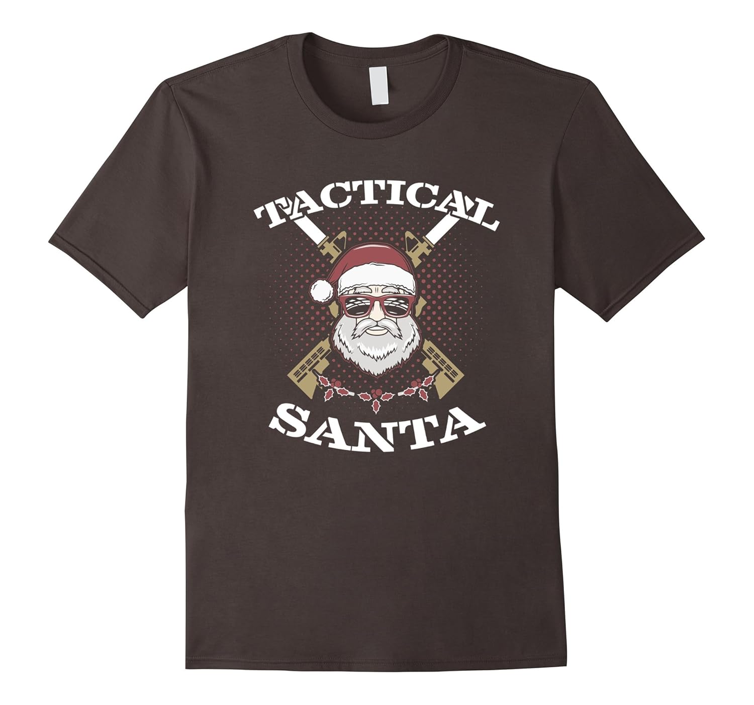 Solid colors: 100% Cotton; Heather Grey: 90% Cotton, 10% Polyester; All Other Heathers: 65% Cotton, 35% Polyester; Imported; Machine wash cold with like colors, dry low heat; This t-shirt makes a great gift for military veterans who love Christmas even though they may be deployed and need to stay tactical.; This Tactical Santa tee will look great when sliding down the chimney in the middle of the night to deliver presents.; Lightweight, Classic fit, Double-needle sleeve and bottom hem