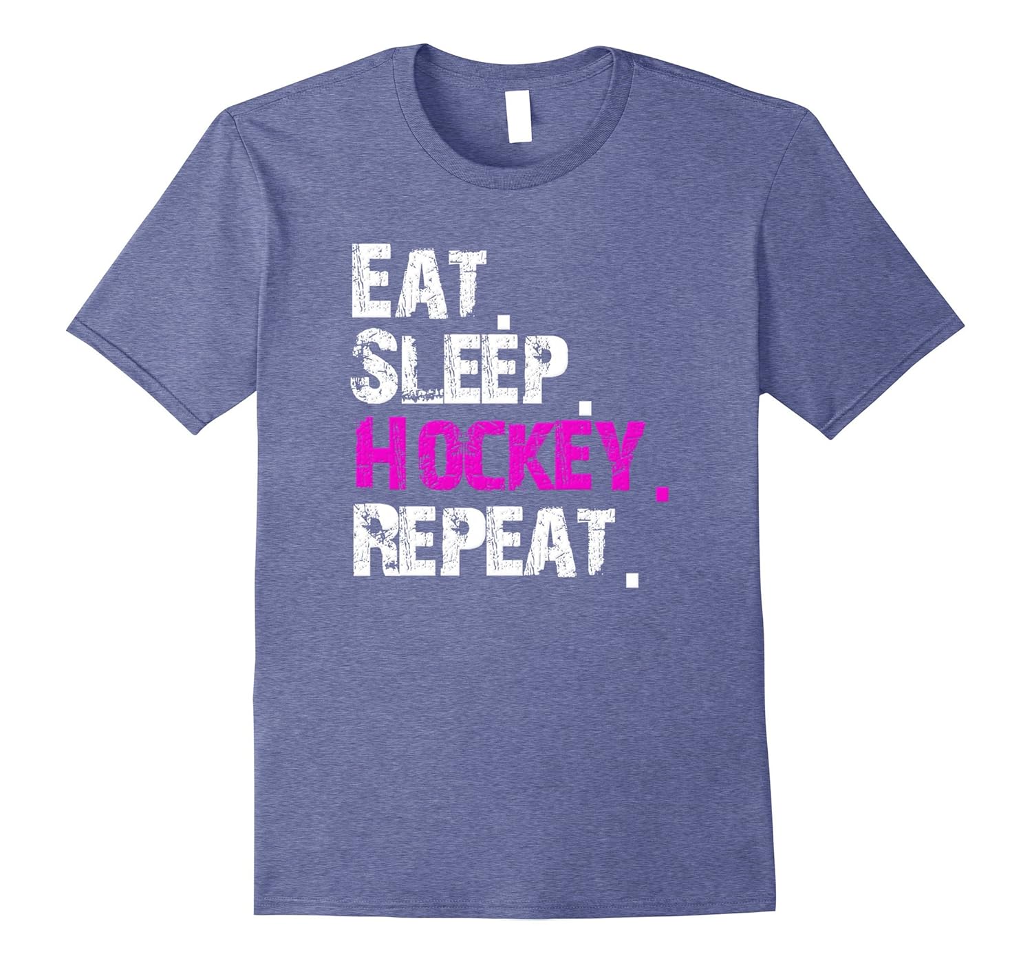 Solid colors: 100% Cotton; Heather Grey: 90% Cotton, 10% Polyester; All Other Heathers: 65% Cotton, 35% Polyester, Imported, Machine wash cold with like colors, dry low heat, Eat. Sleep. Hockey. Repeat. Hockey Sports T-Shirt. A great gift for anyone likes to watch Hockey, Play Sports, Likes Winter Ice Games, Loves Team Sports, or Can”t doesn”t want hockey season to end. Get One today!, The Funny Sports Game Gift Eat. Sleep. Hockey. Repeat Tee is printed to be more fitted. Order a size up for a looser fit. Makes a great Birthday or Christmas Gift for your favorite Hockey enthusiast. Lightweight, Classic fit, Double-needle sleeve and bottom hem