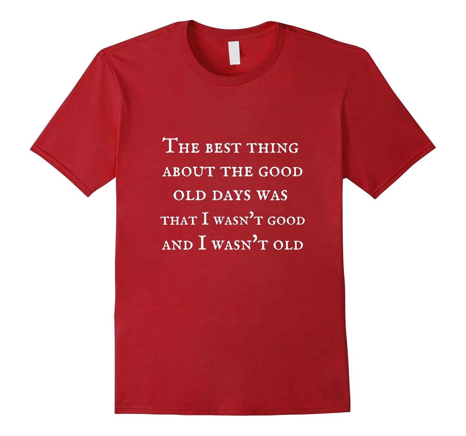 Solid colors: 100% Cotton; Heather Grey: 90% Cotton, 10% Polyester; All Other Heathers: 65% Cotton, 35% Polyester, Imported, Machine wash cold with like colors, dry low heat, Getting old isn”t easy. It takes a lot of time and planning. T-shirt quote: The best thing about the good old days is that I wasn”t good and I wasn”t old. Lightweight, Classic fit, Double-needle sleeve and bottom hem