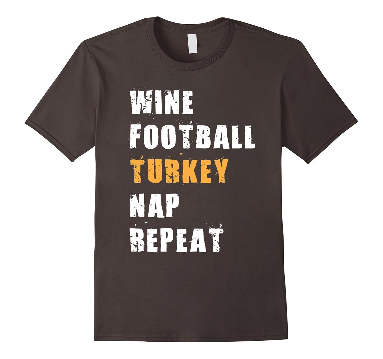 Funny Thanksgiving Shirt, Wine Football Turkey Nap Repeat-ANZ