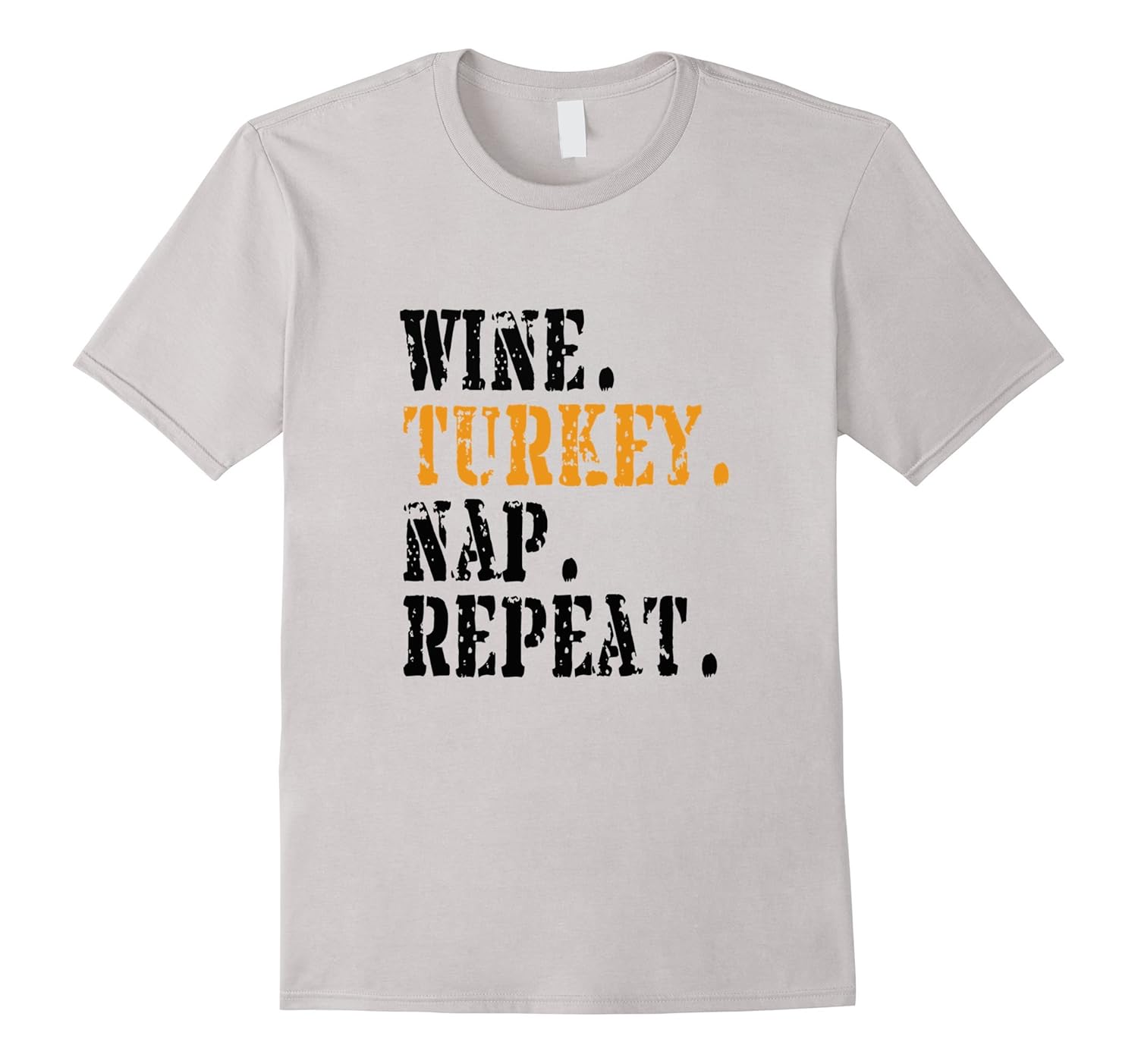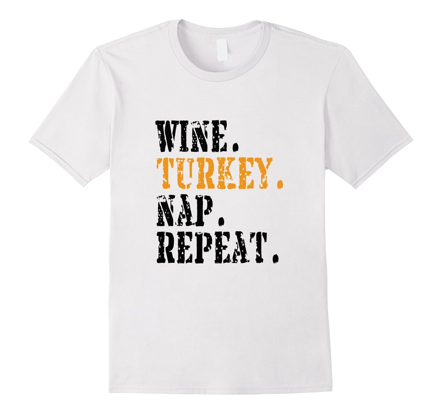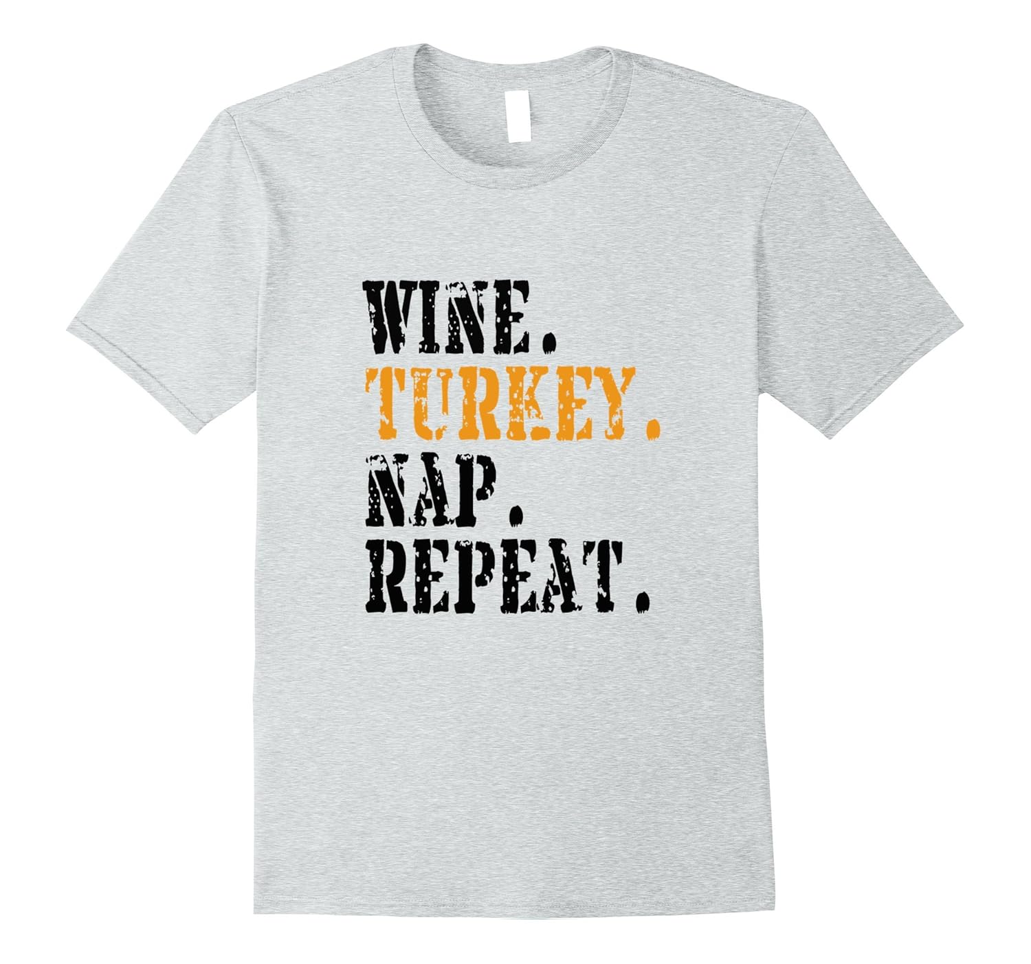 Solid colors: 100% Cotton; Heather Grey: 90% Cotton, 10% Polyester; All Other Heathers: 65% Cotton, 35% Polyester, Imported, Machine wash cold with like colors, dry low heat, Funny Thanksgiving t shirt puts out holiday vibe. Drink wine, eat turkey, take a nap then repeat. Its what the day is all about with friends and; family. Cool Fall tshirt for Thanksgiving for men women adults mom and; dad. Clothes for Christmas and; Hanukkah too. Unique gifts for under $20 birthdays and; holidays. Stylish Thanksgiving break or vacation short sleeve beach shirt for adults. Thanksgiving day t shirt for the family gathering. Thanksgiving clothing gear merchandise. Novelty Thanksgiving tshirt for adults. Lightweight, Classic fit, Double-needle sleeve and bottom hem