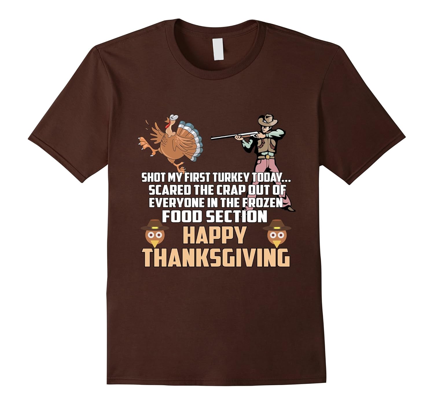 Solid colors: 100% Cotton; Heather Grey: 90% Cotton, 10% Polyester; All Other Heathers: 65% Cotton, 35% Polyester, Imported, Machine wash cold with like colors, dry low heat, Hilarious and cute Fall Thanksgiving Turkey Tshirt. Perfect Thanksgiving Tee to wear this year! Crying of laughter, Shot my first Turkey Today…Scared the Crap out Of Everyone In the Frozen Food section, funny, holidays have me feeling full, Great gift for your Dad,Mom, Brother, Sister, Grandmother, Grandfather, Aunt, Uncle, Cousin, Son or daughter. Happy Holidays!, Lightweight, Classic fit, Double-needle sleeve and bottom hem