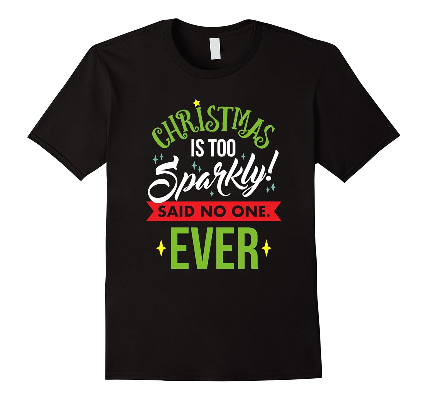 Solid colors: 100% Cotton; Heather Grey: 90% Cotton, 10% Polyester; All Other Heathers: 65% Cotton, 35% Polyester; Imported; Machine wash cold with like colors, dry low heat; A funny Christmas t shirt for anyone who loves reindeer, santa claus, Christmas tree, tinsel, candies and Christmas stuff. Wear this ugly sweatshirt tee shirt on Christmas eve or 25th December.; Christmas Is Too Sparkly Said No One Ever Cool Ugly Christmas Sweater Tshirt – Makes great holiday gag gifts for birthdays, Christmas, Hanukkah or any holiday season.; Lightweight, Classic fit, Double-needle sleeve and bottom hem