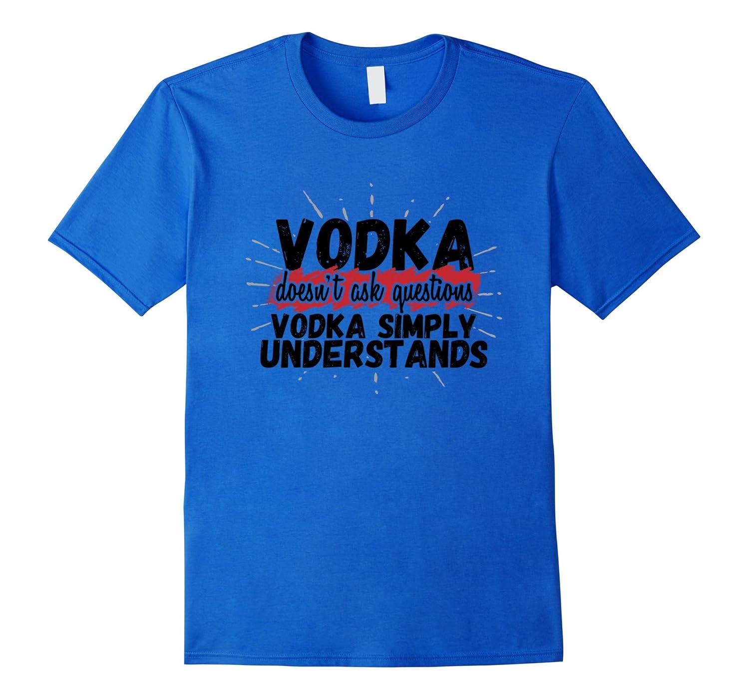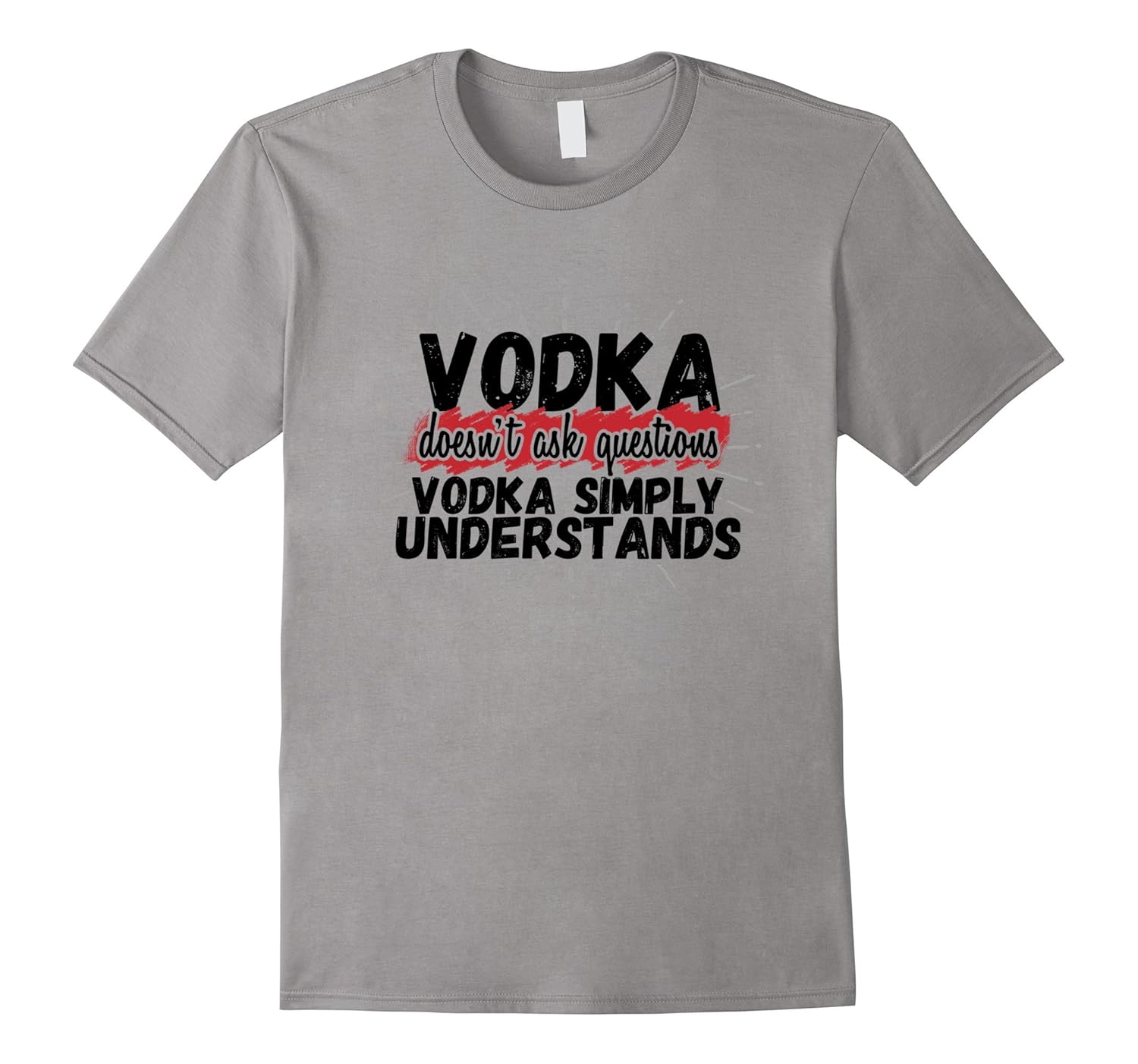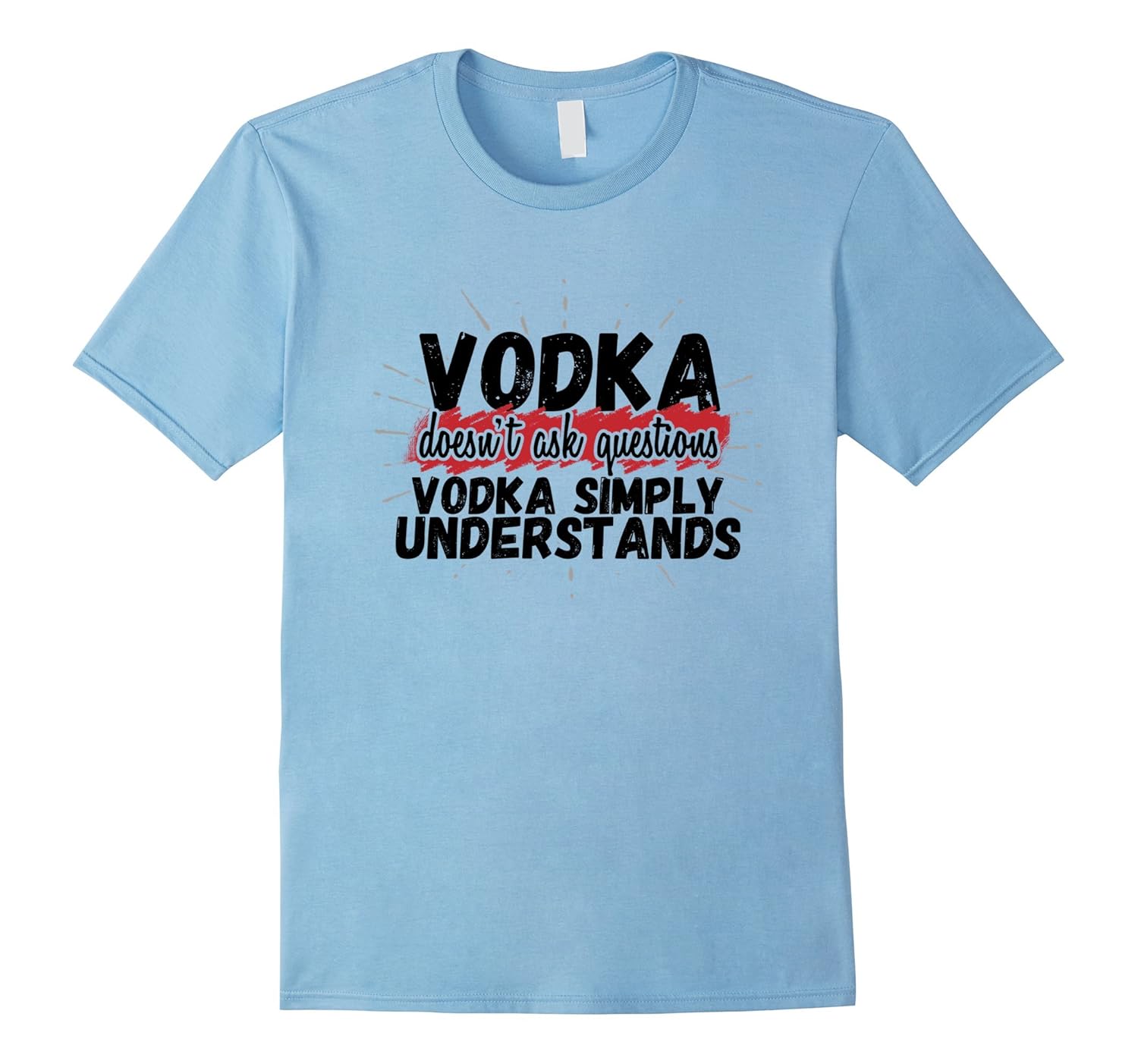 Solid colors: 100% Cotton; Heather Grey: 90% Cotton, 10% Polyester; All Other Heathers: 65% Cotton, 35% Polyester, Imported, Machine wash cold with like colors, dry low heat, Show your sense of humor and your vodka love with this funny vodka lover shirt that reads: Vodka Doesn”t Ask Questions Vodka Simply Understands. This t shirt will let everyone know that vodka is your favorite beverage or that you you like to party and enjoy life to the fullest. Lightweight, Classic fit, Double-needle sleeve and bottom hem