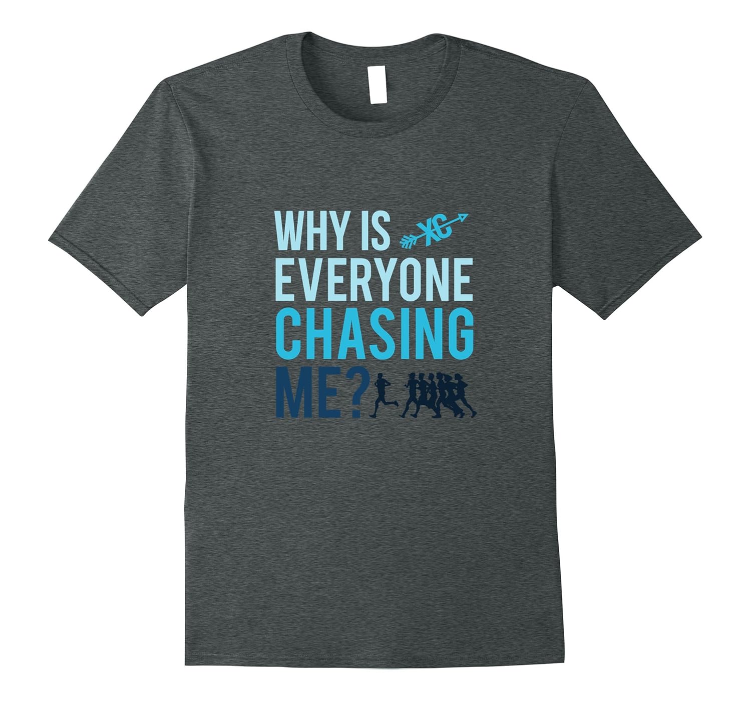 Solid colors: 100% Cotton; Heather Grey: 90% Cotton, 10% Polyester; All Other Heathers: 65% Cotton, 35% Polyester, Imported, Machine wash cold with like colors, dry low heat, Do you enjoy being a long distance runner, and going straight like an arrow for miles with your cross country team. This gift tee is for runners and coaches who enjoy running for a long time, and have the thirst to win!, Funny Why is Everyone Chasing Me T-Shirt Cross Country Gift for Women or Men. This Tee Shirt is designed and printed to be fitted novelty apparel. For a more baggy fit, please order a size up for a proper fit!, Lightweight, Classic fit, Double-needle sleeve and bottom hem
