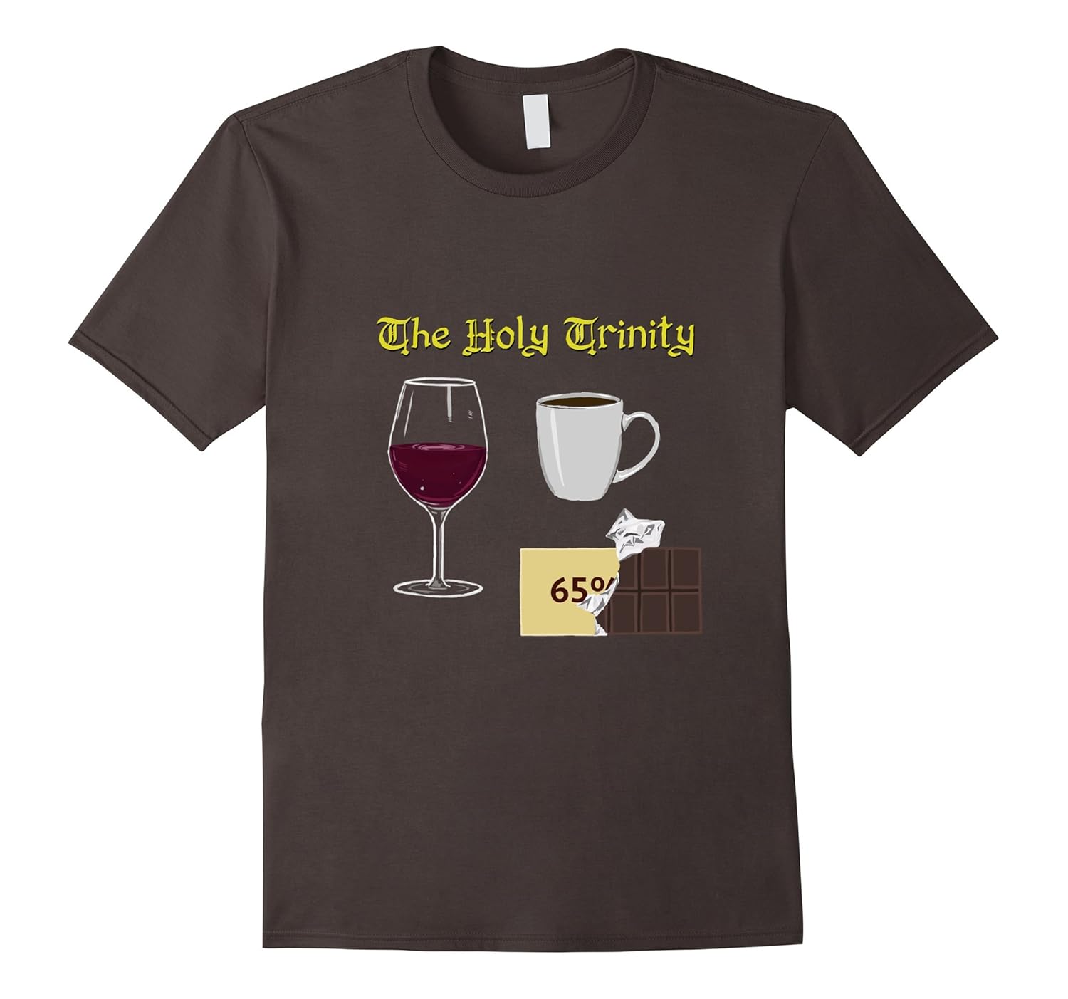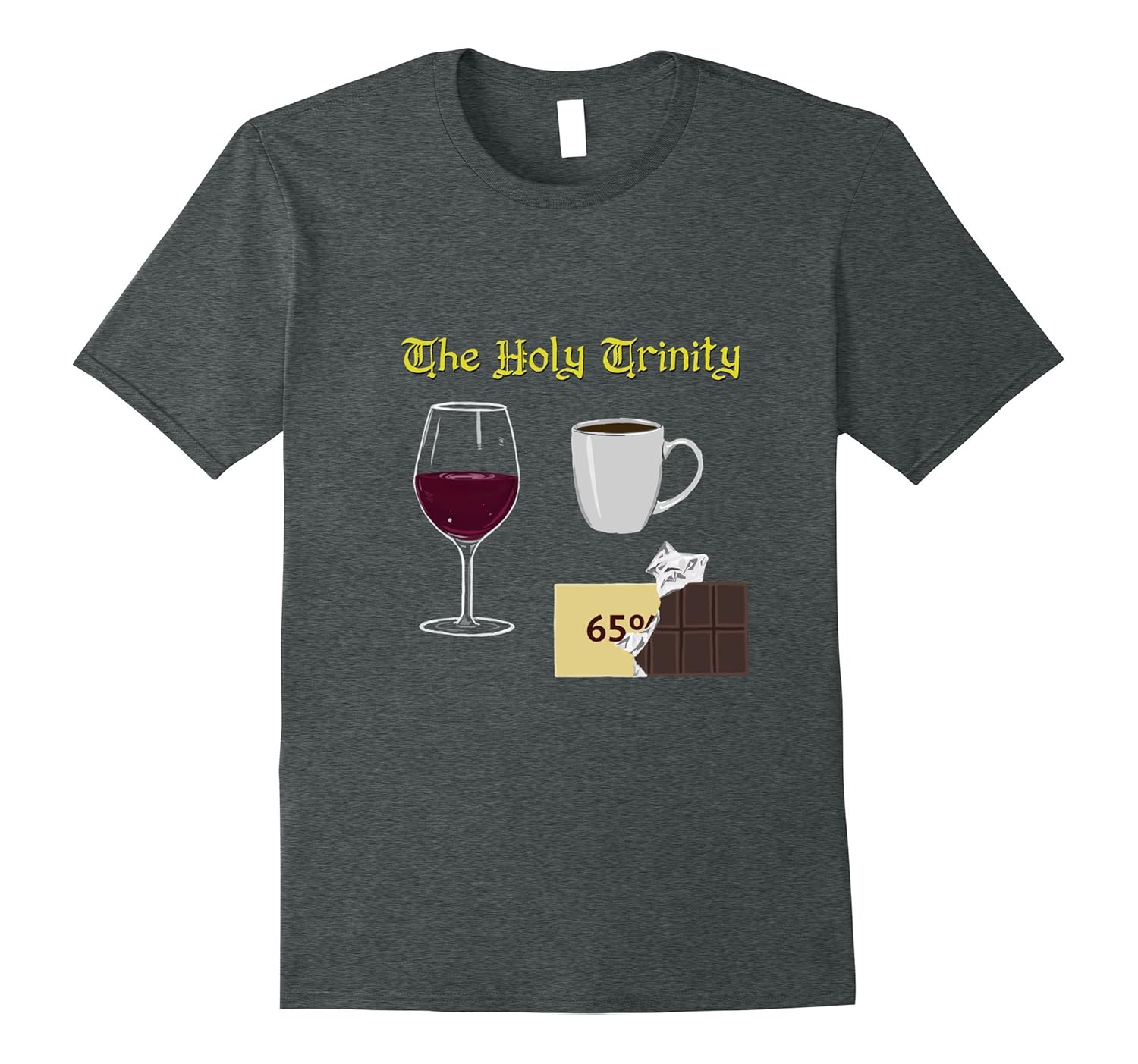 Solid colors: 100% Cotton; Heather Grey: 90% Cotton, 10% Polyester; All Other Heathers: 65% Cotton, 35% Polyester, Imported, Machine wash cold with like colors, dry low heat, Genuine Crowden Satz Apparel cartoon T. You”ve seen them in mags; now you can wear them!, These are the three – coffee, wine, chocolate. Embrace them!, Lightweight, Classic fit, Double-needle sleeve and bottom hem