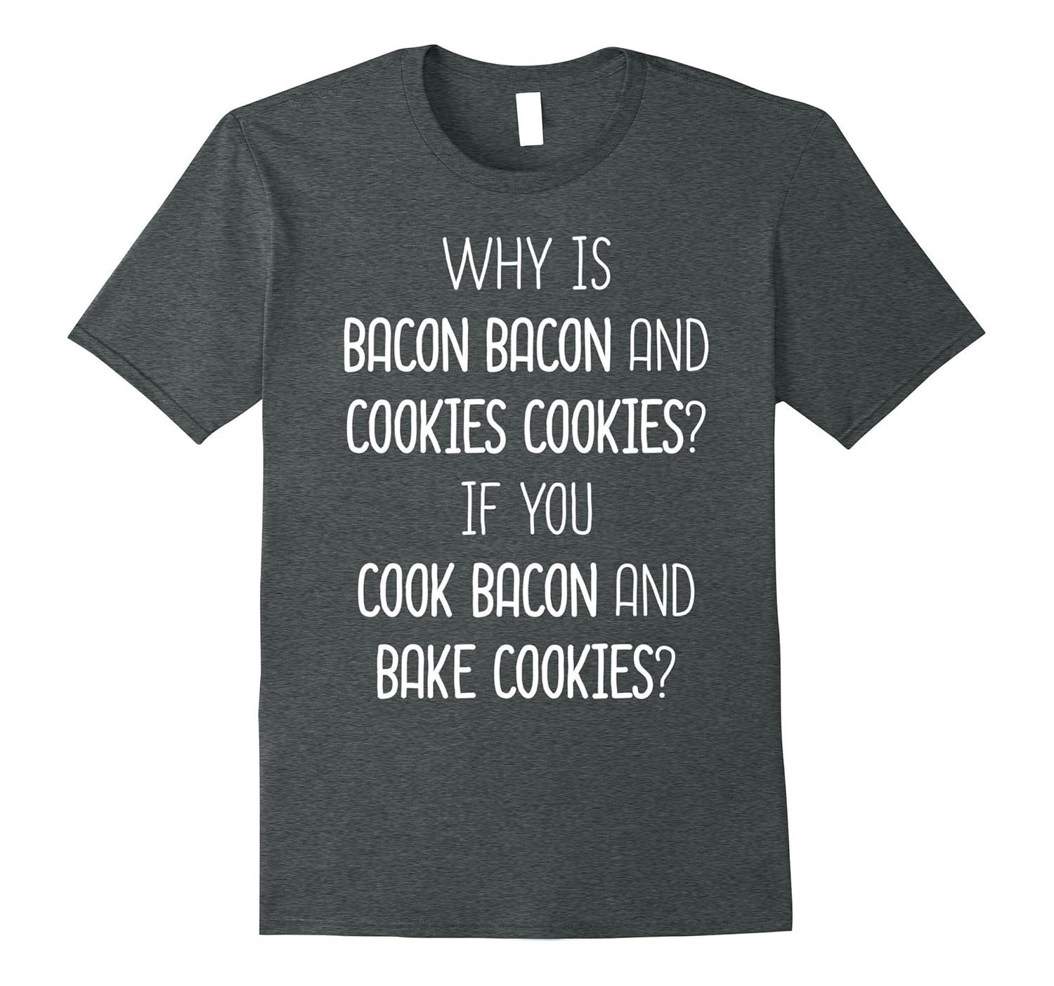 Solid colors: 100% Cotton; Heather Grey: 90% Cotton, 10% Polyester; All Other Heathers: 65% Cotton, 35% Polyester, Imported, Machine wash cold with like colors, dry low heat, Why is bacon bacon and cookies cookies, if you cook bacon and bake cookies t-shirt is a funny word play. Ideal as bacon t-shirt, bacon lover tshirt, cookies t-shirt, cookies lover tshirt or funny wordplay tee shirt. A great bacon gift idea t-shirt to have. A funny t-shirt about food, diet, hungry, cupcakes, muffins, pizza, coffee. Calories call for exercise, outdoor, gym, run, jogging, yoga. An existential question about food, bacon or cookies. A funny calories t-shirt that will bring smile to your friends. Lightweight, Classic fit, Double-needle sleeve and bottom hem