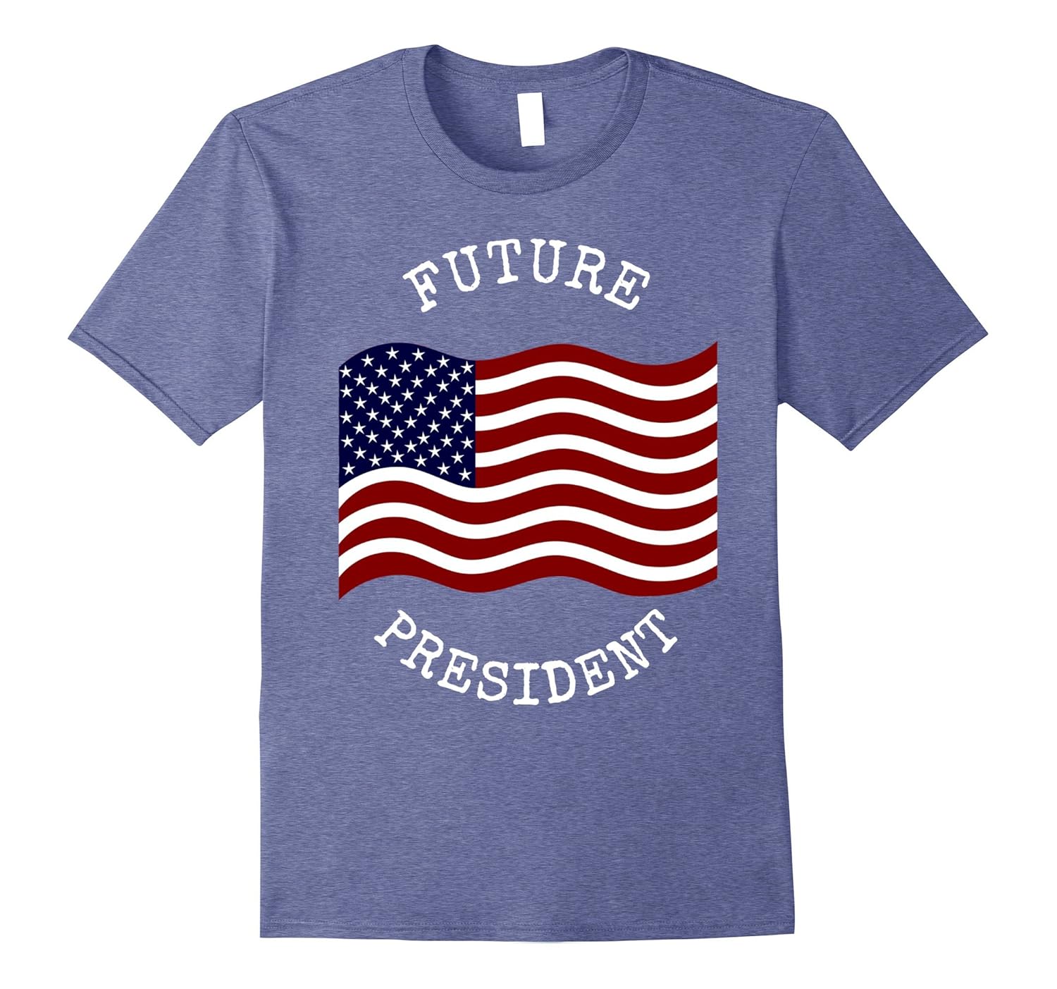 Solid colors: 100% Cotton; Heather Grey: 90% Cotton, 10% Polyester; All Other Heathers: 65% Cotton, 35% Polyester, Imported, Machine wash cold with like colors, dry low heat, Perfect t-shirt design for boys, girls, men, and women who aspire to be the President of the United States, Depicts the U.S. Flag and curve font Future President text. If someone you know dreams of being the President someday this shirt is for them, Lightweight, Classic fit, Double-needle sleeve and bottom hem