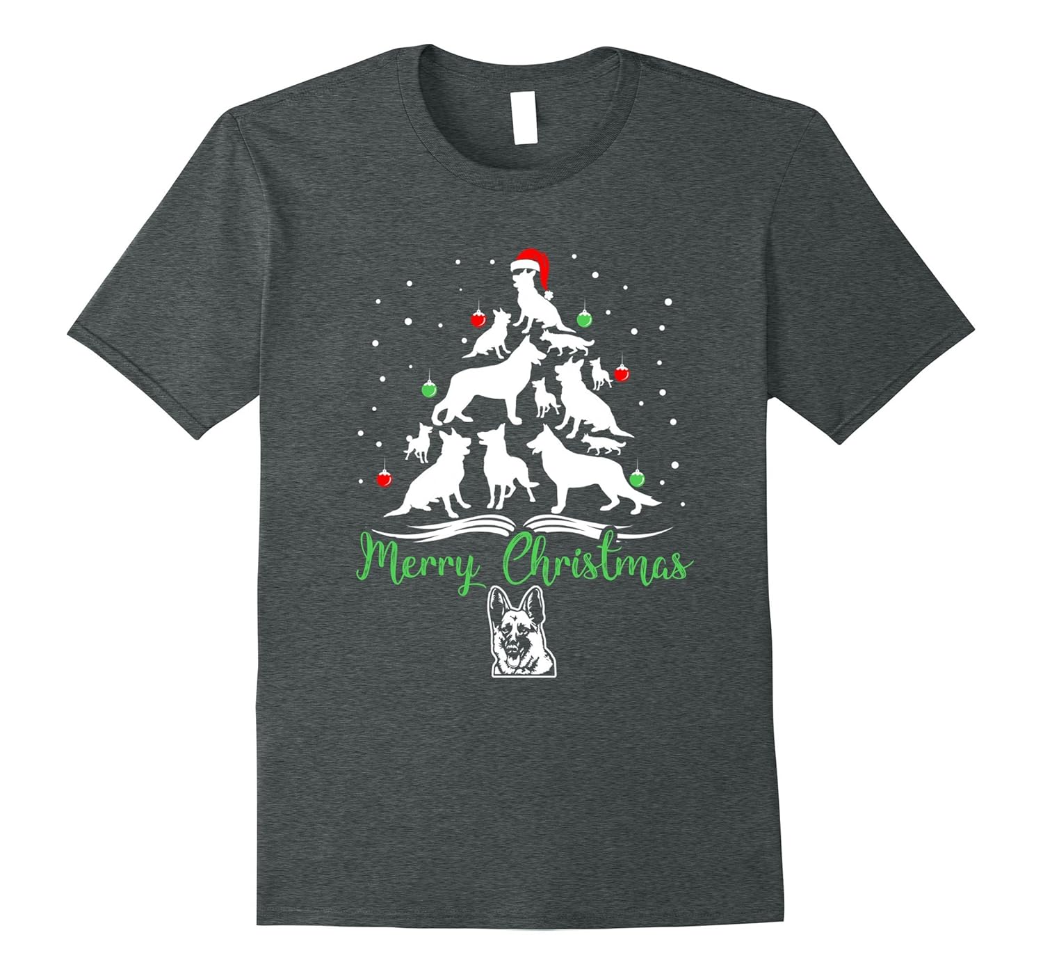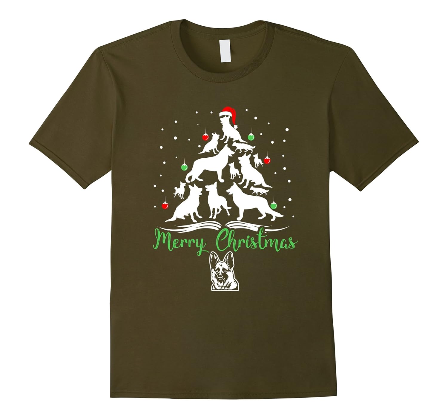 German Shepherd Christmas Tree Merry Christmas Gift T-shirt-ANZ