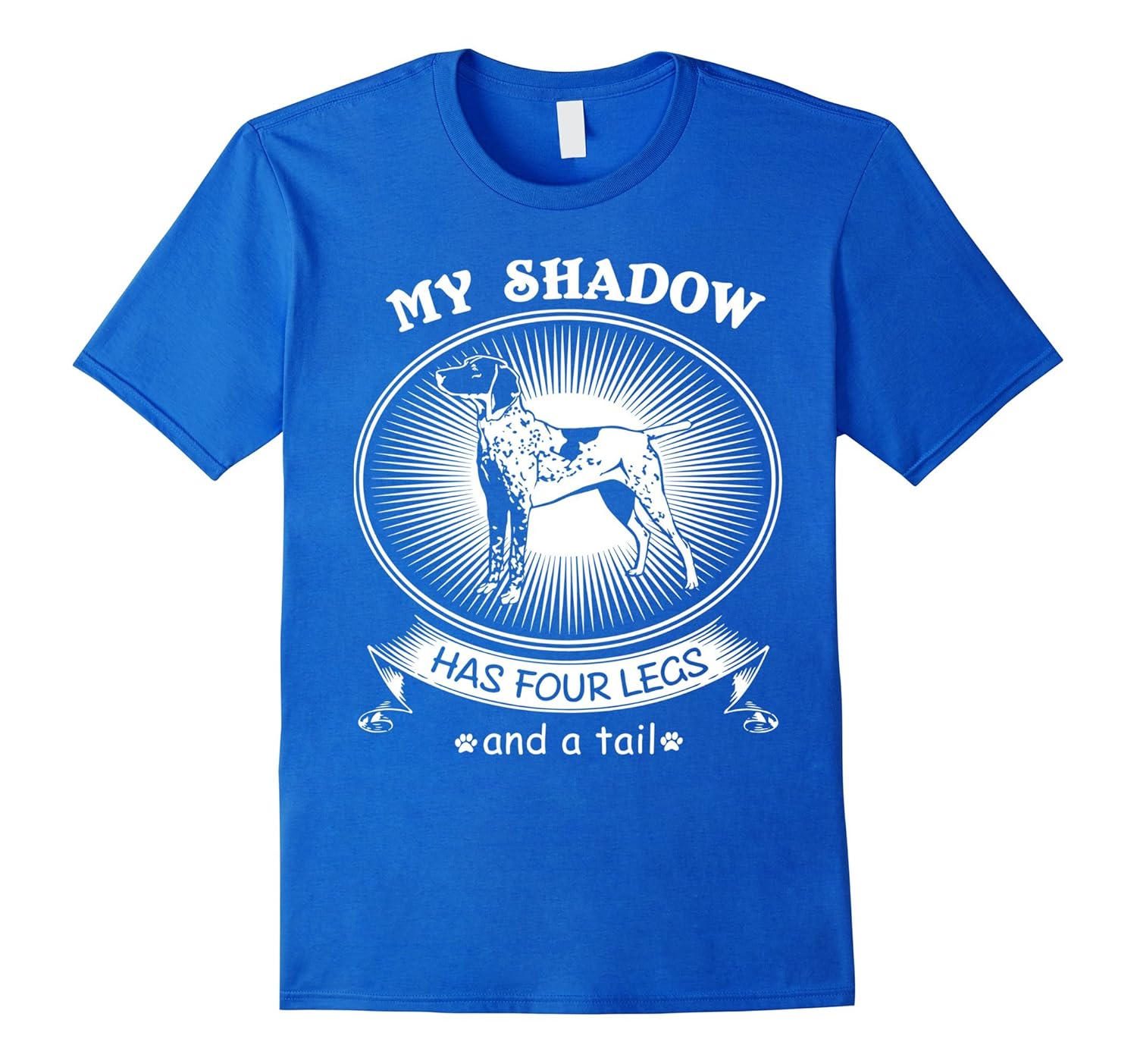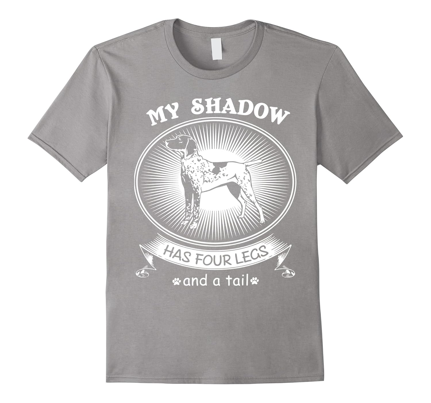 100% Cotton; Imported; Machine wash cold with like colors, dry low heat; My Shadow has four legs and a Tail German Shorthair Pointer Shirt.; My Shadow has four legs and a Tail GSP Dogs Tee Shirt is a super cute gift for GSP lovers and owners.; Lightweight, Classic fit, Double-needle sleeve and bottom hem